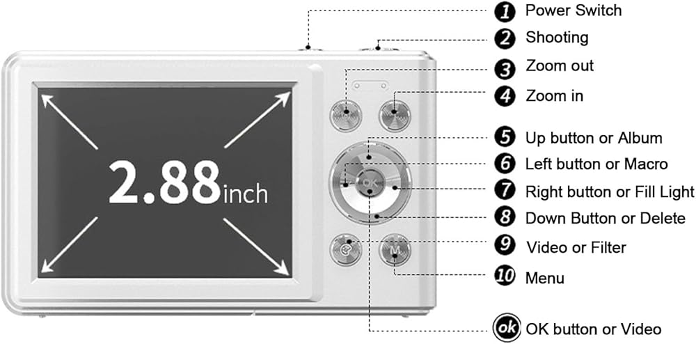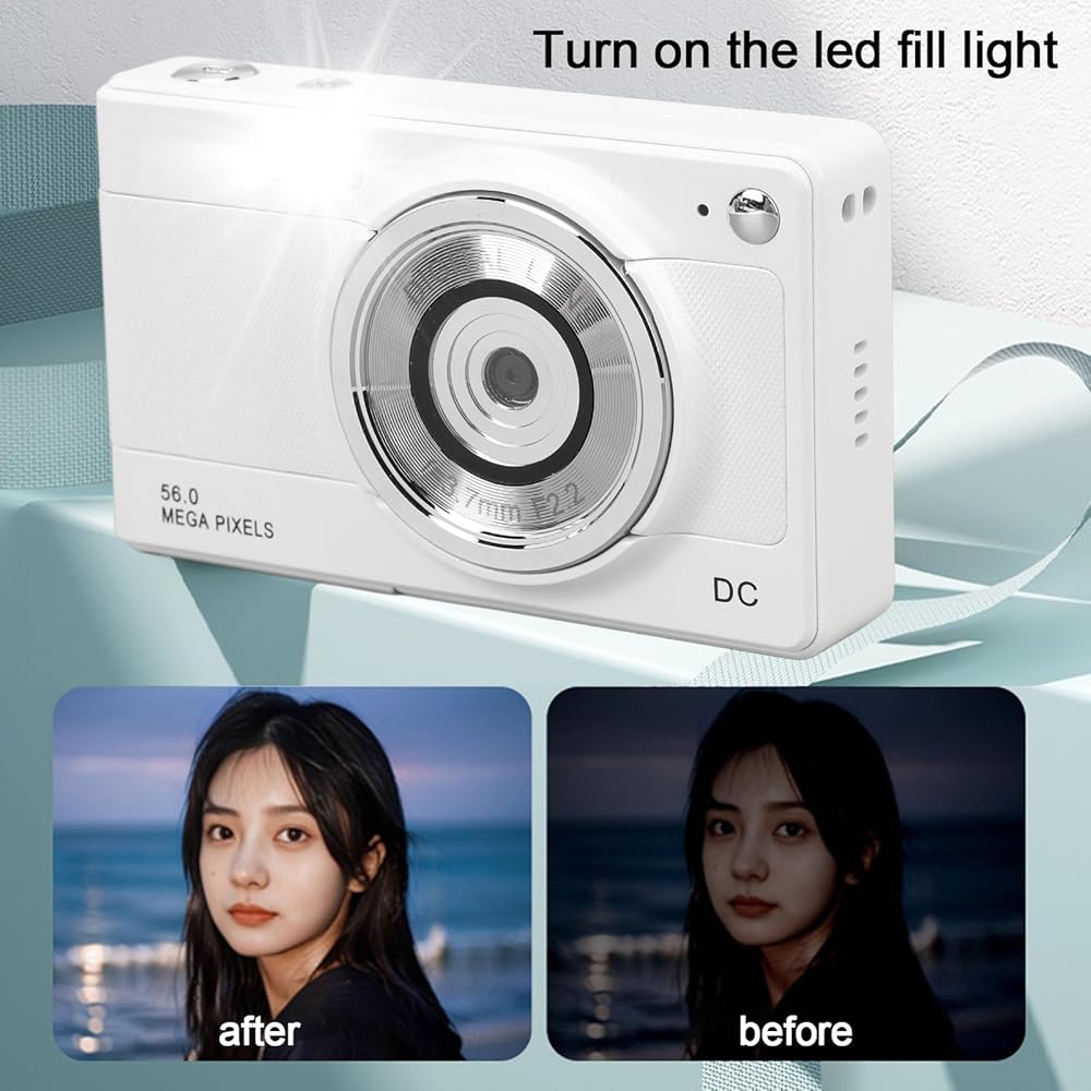 3. 2.8 INCH IPS HD DISPLAY: It has a 2.8 inch IPS HD display, which can clearly display text, food, flowers and other details. Besides this camera also supports macro shooting and panorama mode. It also comes with led fill light to help improve the scene lighting environment, low light environment and night scene can also be recorded clearly.