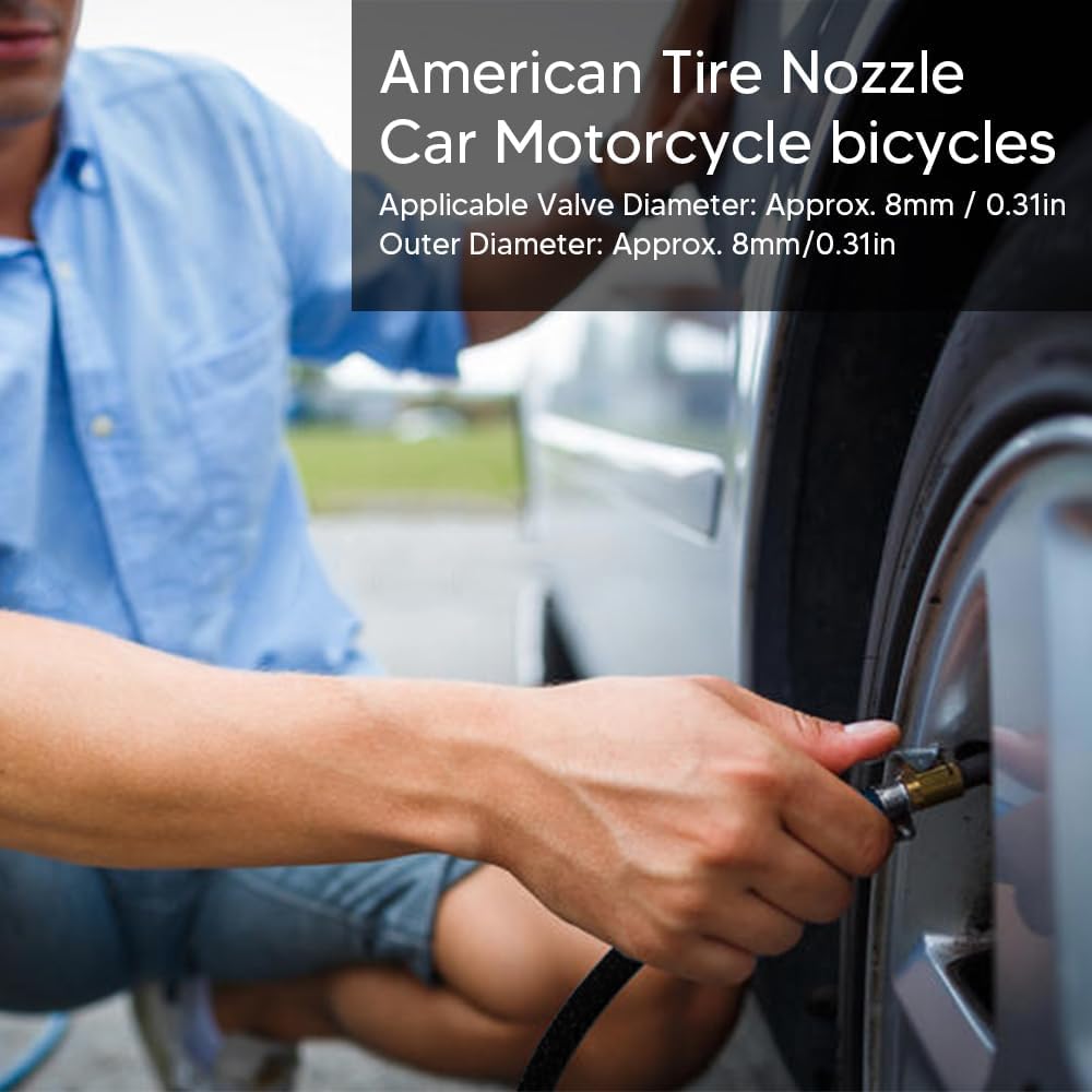 تطبيق واسع: محول نفخ الإطارات مناسب للتواصل مع جميع مضخات هواء السيارات ، ومناسبة للسيارات والدراجات النارية والدراجات مع فوهات الإطارات الأمريكية. المحول مع وظيفة إطلاق.