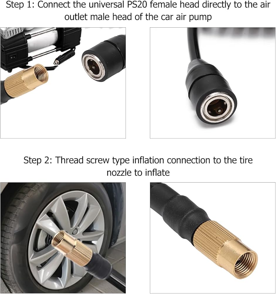 باستخدام الخطوة: خرطوم ضاغط الهواء ، قم بإبطال نهاية المحول على خرطوم التضخيم الأصلي ، وقم بربي الطرف الآخر من المحول على صمام الإطارات ، وابدأ في التضخم السريع ولا يتسرب.
