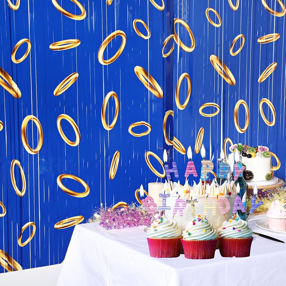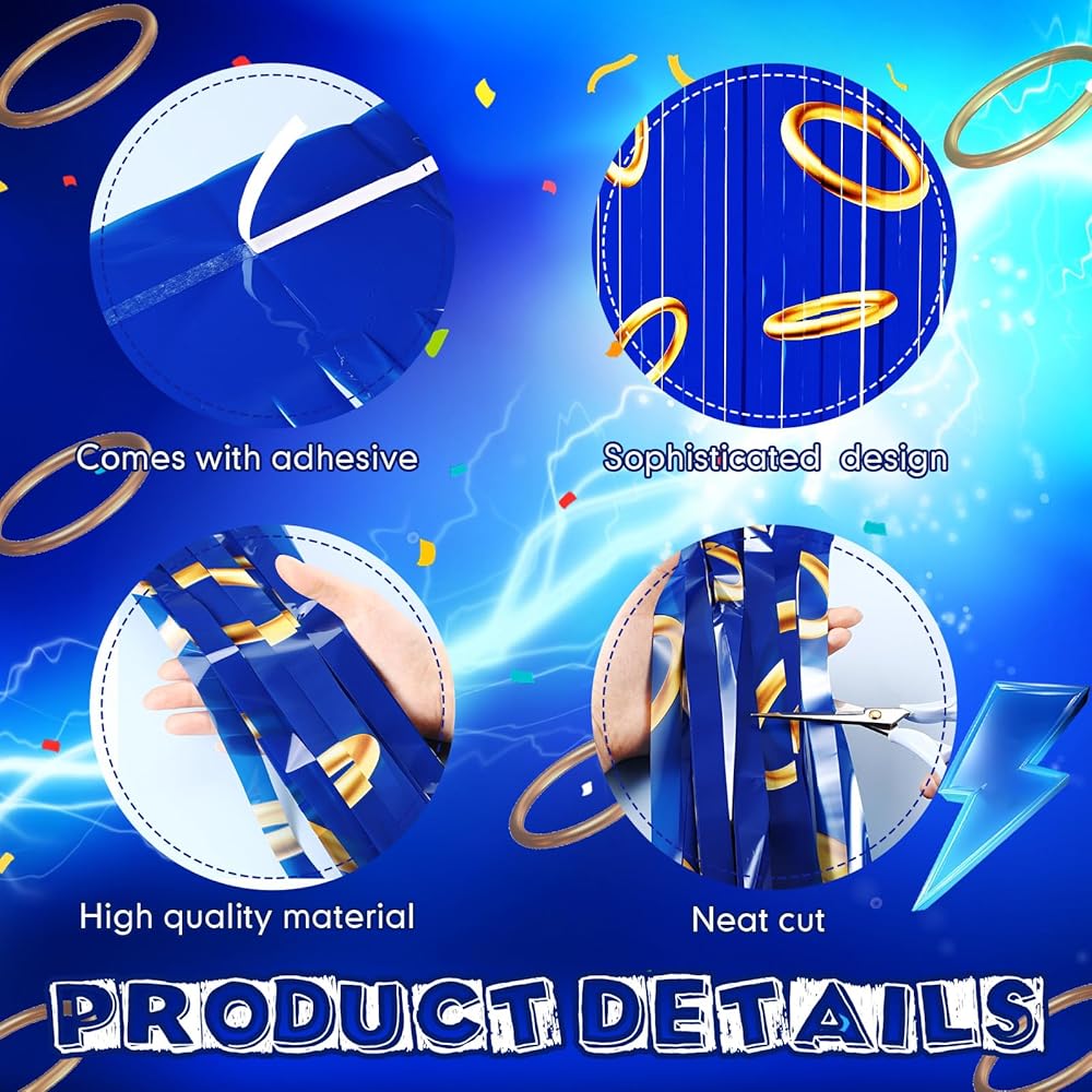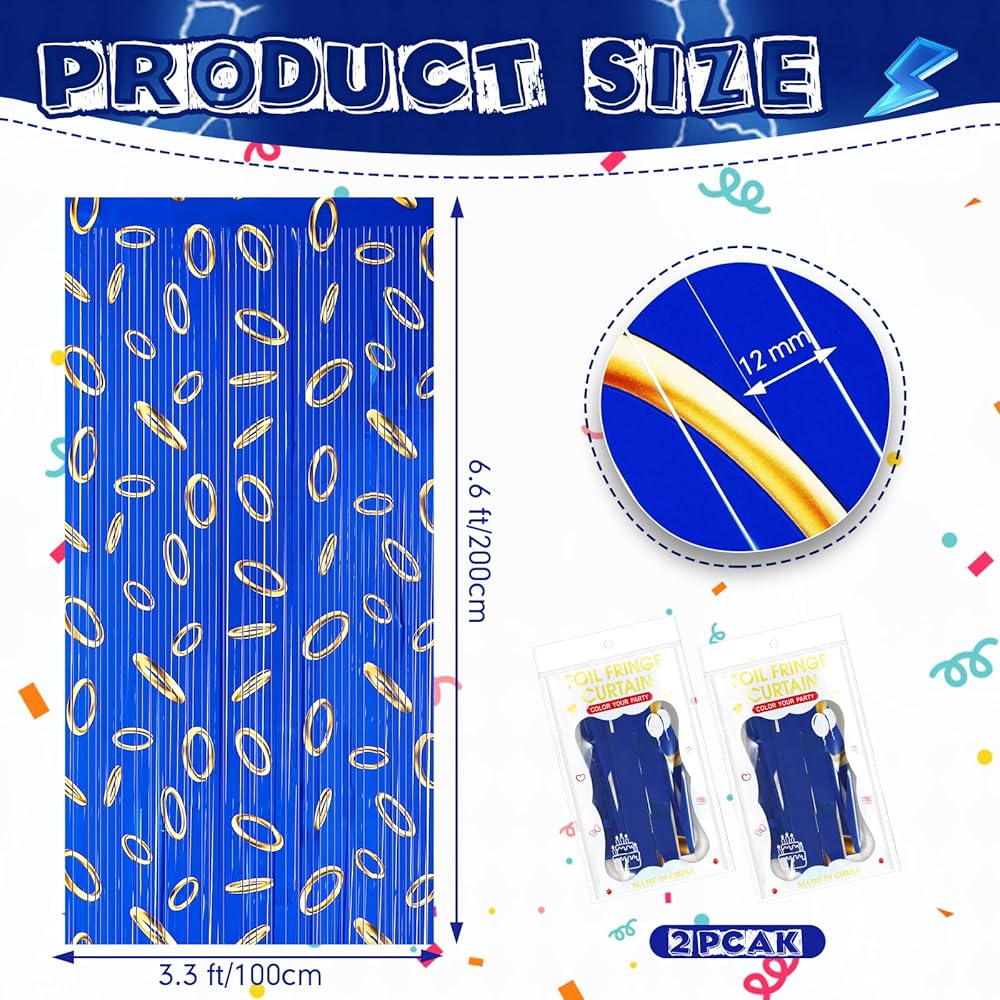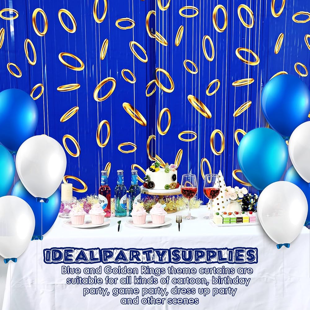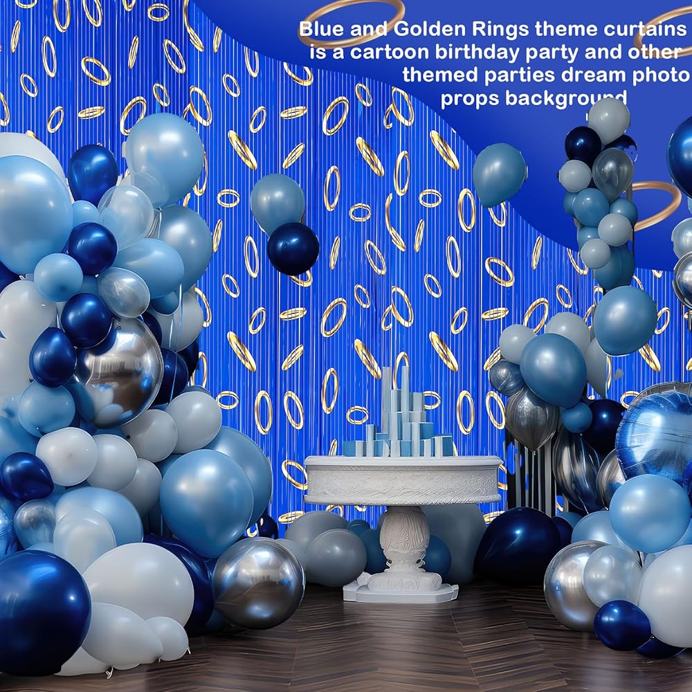• Ideal Party Supplies: blue with gold ring theme curtains are suitable for various cartoons, birthday parties, game parties, dress-up parties and other scenes, It is an ideal party item for taking photos and livening up the atmosphere, suitable for doorways, windows, walls, bedrooms, game rooms and stage background decorations