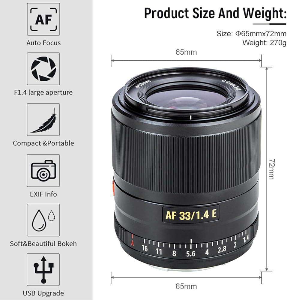 البناء والتصميم: تم تصميم العدسة مع غلاف معدني قوي ، مما يوفر المتانة وشعور متميز دون الحاجة إلى تحريك الطقس.