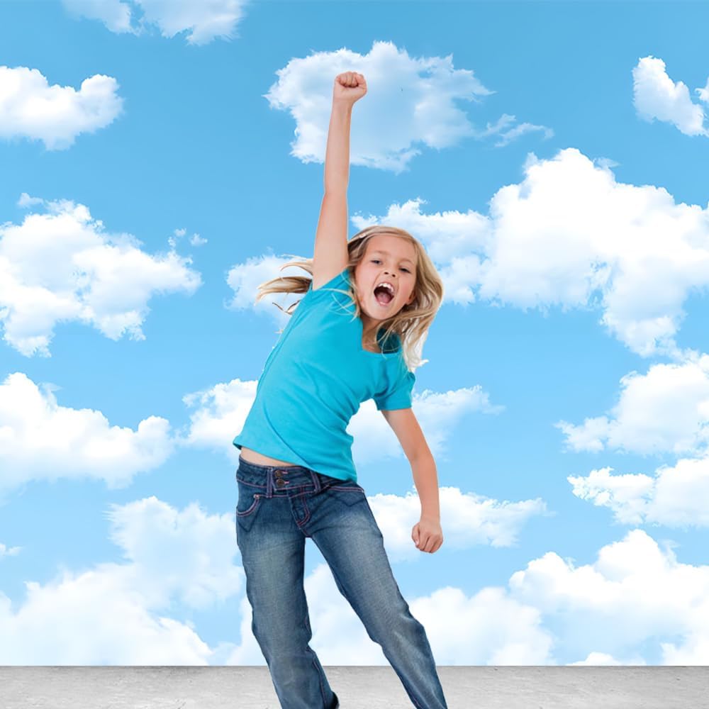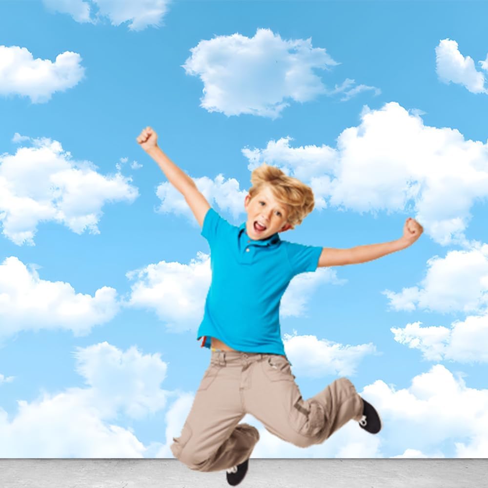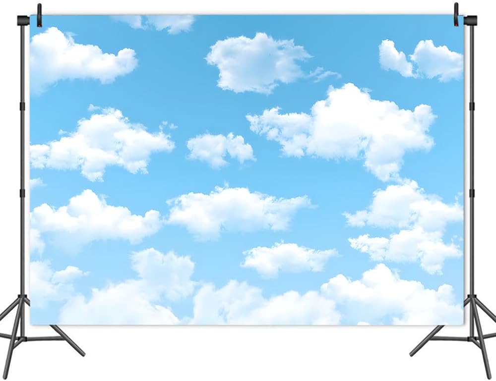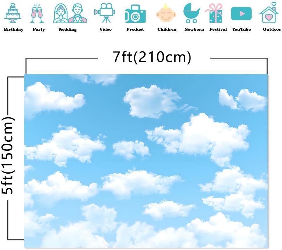 Yongqian 7x5ft Sky Sky White Cloud Photography Backdrop World Travel Aviator Children Birthday Decor