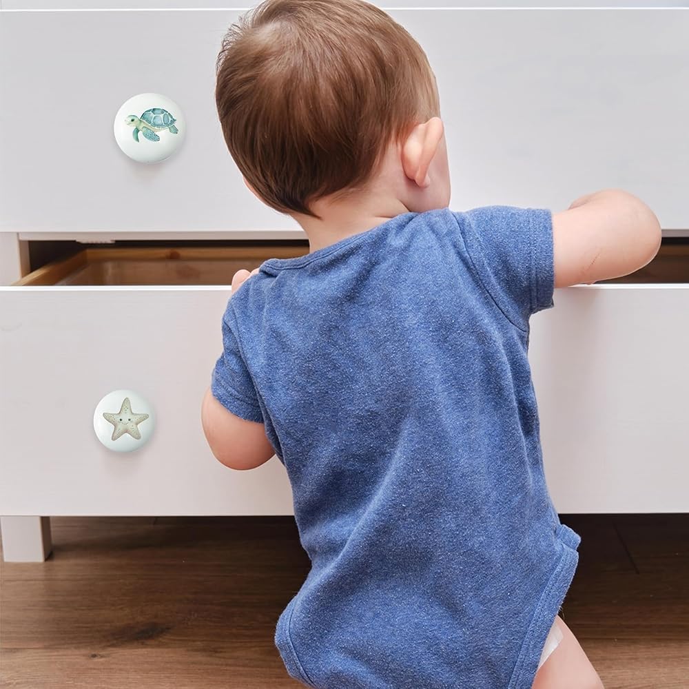 • 【Unique Design】: Featuring 6 colorful ocean-themed designs, these knobs offer a fun and unique touch, perfect for adding a cozy and personalized feel to your home or child's room.