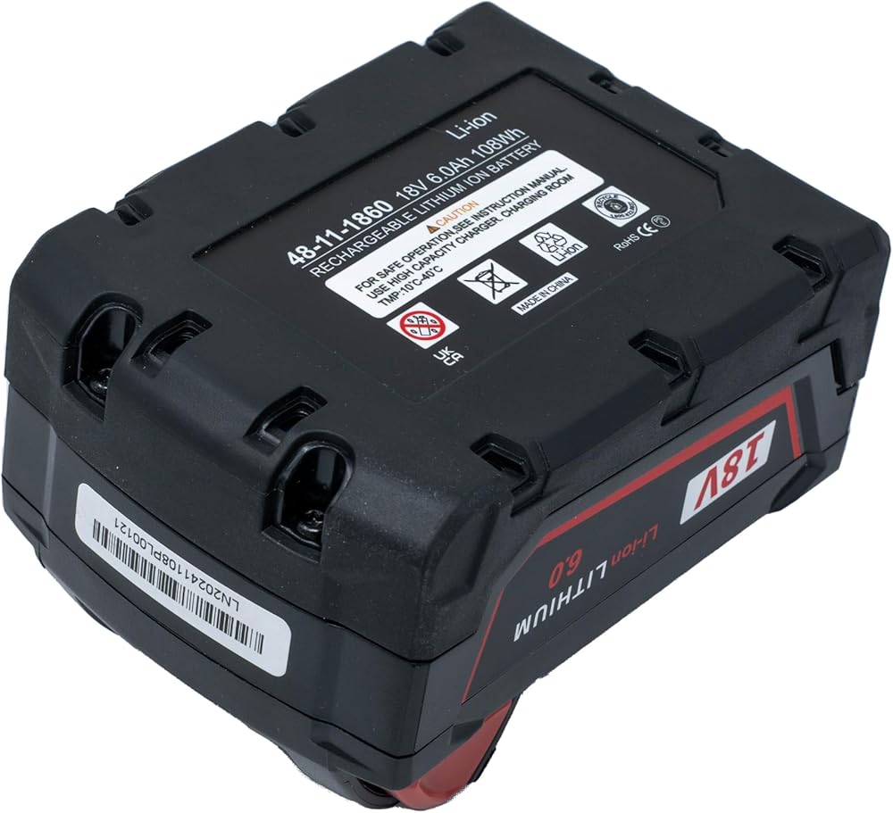 بطاريات متوافقة: ميلووكي M18 بما في ذلك 48-11-1865 ، 48-11-1880 ، 48-11-1852 ، 48-11-1850 ، 48-11-1820 ، 48-11-1840 ، 48-11-1862 ، 48- 11-1890