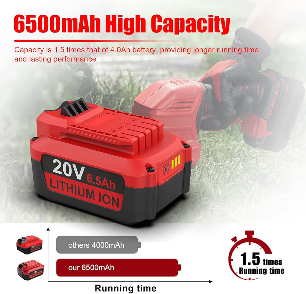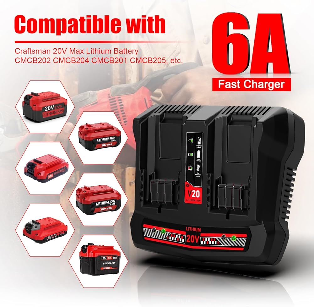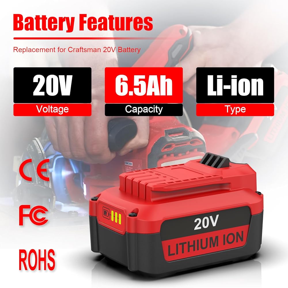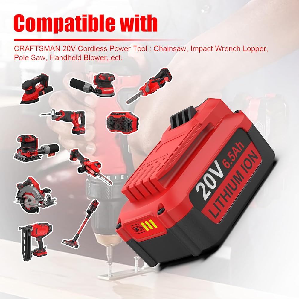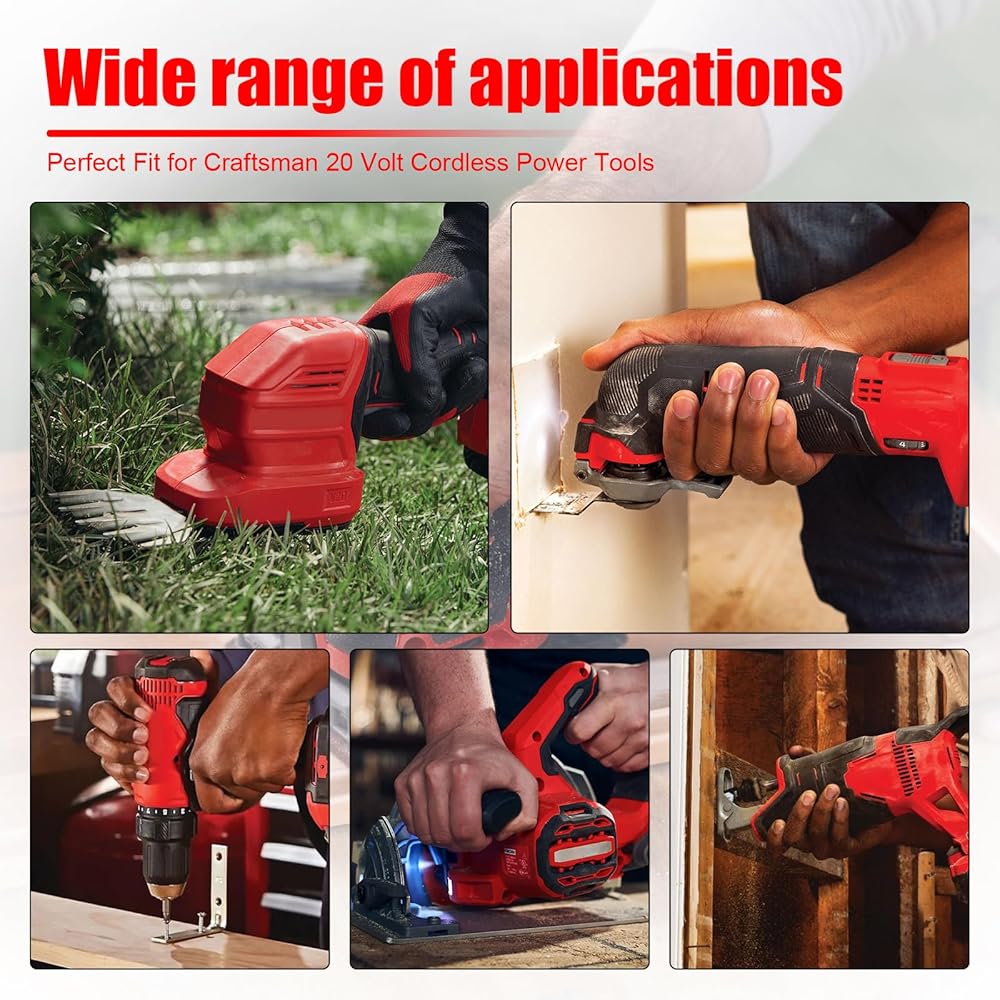 التوافق على نطاق واسع: متوافق مع جميع بطاريات CRAFTSMAN 20 فولت MAX LI-ION CMCB200 ، CMCB201 ، CMCB202-2 ، CMCB204-2 ، CMCB204-OPP ، CMCB209 ، إلخ. (ملاحظة: لا يمكن أن تناسب سلسلة Craftsman 20V Max Bolt-on)