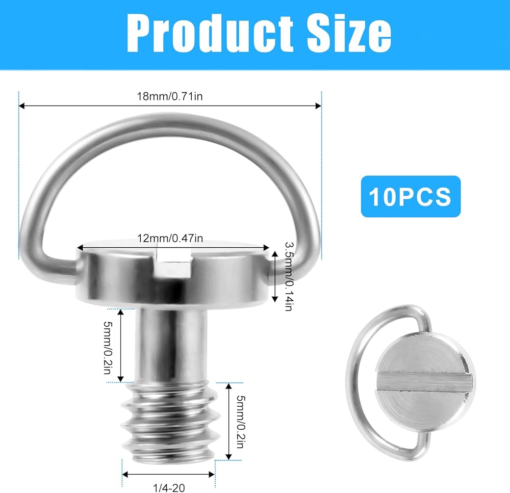 Product Included: You will receive 10 pieces of the 1/4" camera tripod screws. Sufficient quantity to meet your use and replacement needs.