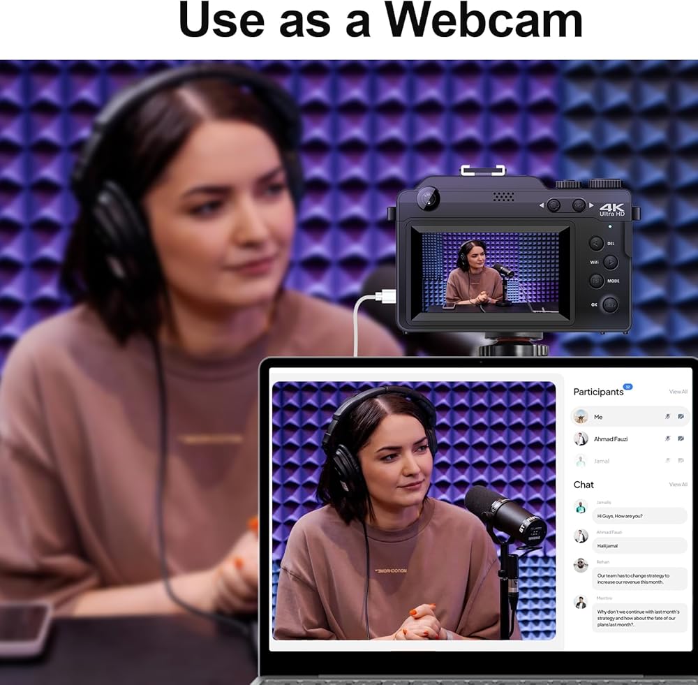 【High performance webcam】This 1080P digital camera can be connected to a computer via the included USB cable to be used as a webcam.This webcam to help you enjoy video chatting& take live shows.