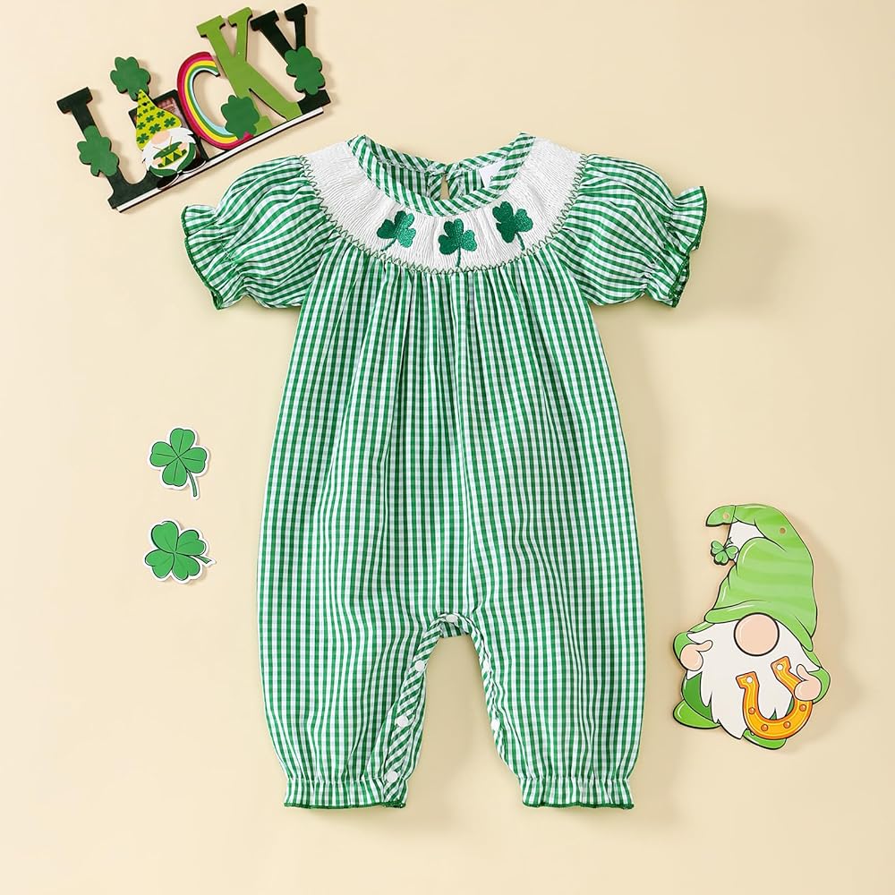 • التصميم: Romper فريدة من نوعها من قطعة واحدة ، يضم ثلاثة شاميروكس مطرزة في خط العنق. تصميم الرواية ، هذه هي أفضل هدية لطفلك (من 0 إلى 18 شهرًا) للاحتفال بأول عيد القديس باتريك.