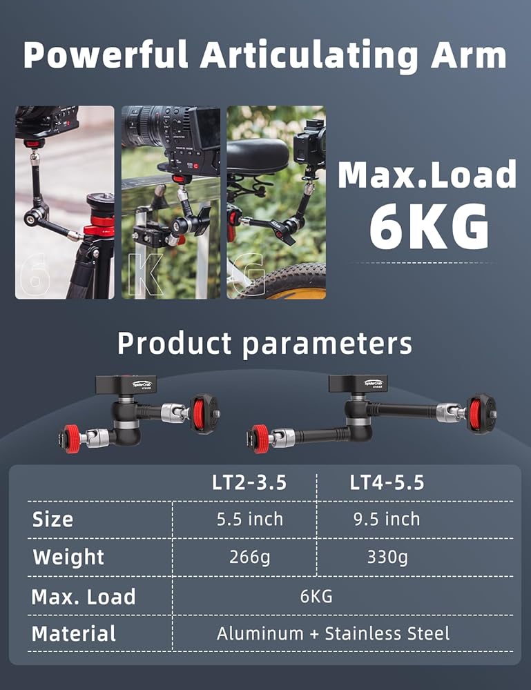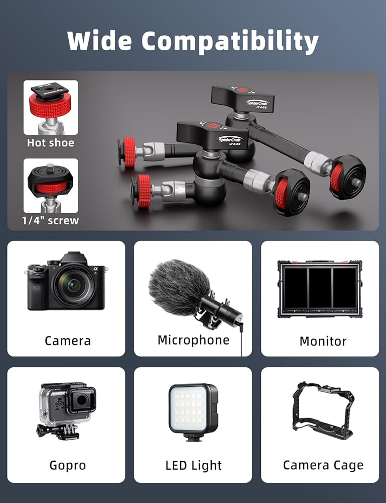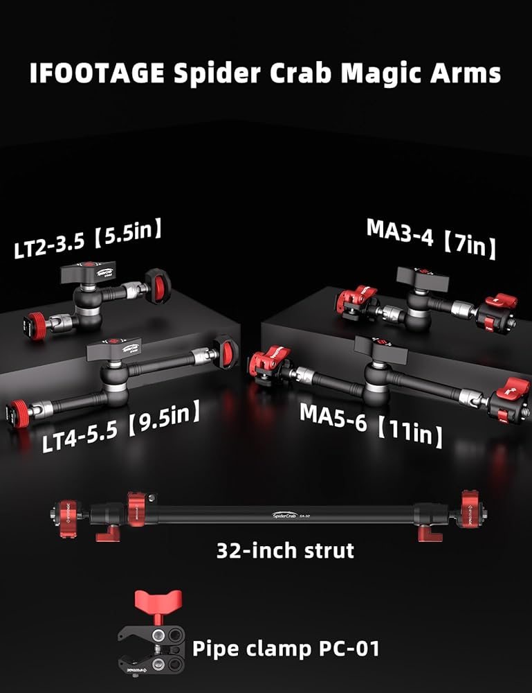 Ifootage Magic Arm Spider Crab LT4-5.5 ، MOUNTOR ARM CAMERAND ARM MOUNT ، حمولة واضحة الذراع 6 كجم ، 1/4 بوصة للكاميرات/الشاشة/الأضواء/العرض (9.5 بوصة)