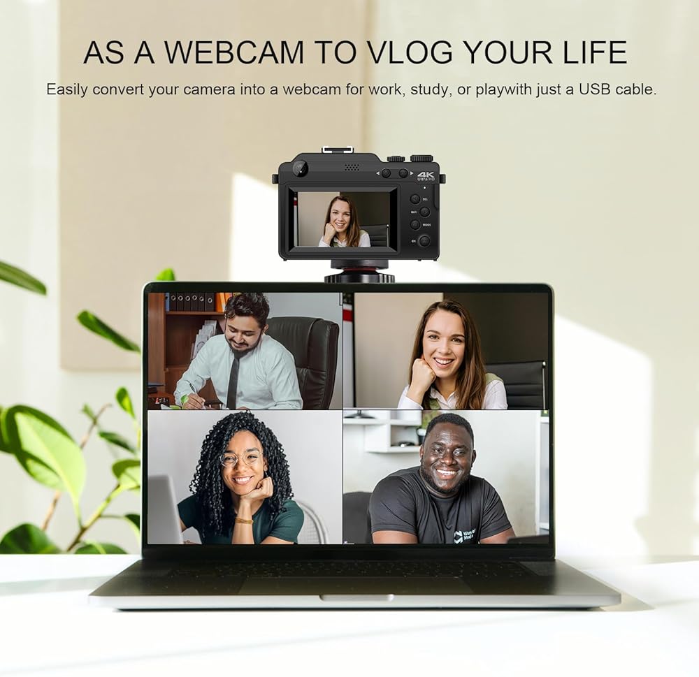 【Webcam &vlogging record】This 1080P digital camera can be connected to a computer via the included USB cable to be used as a webcam,so you can participate in live webcasts or make video calls with your friends, family, and children.