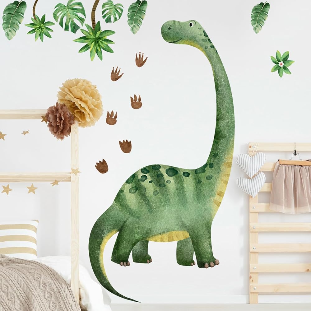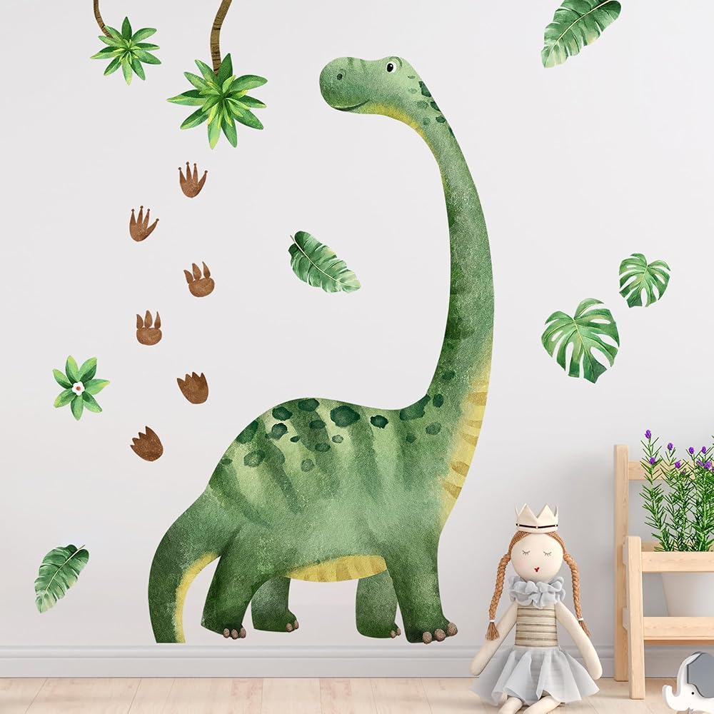 شارات جدار الديناصورات للأولاد غرفة جدار دينو أخضر مع آثار أقدام نخيل استوائية يترك الأطفال أطفال حضانة غرفة نوم غرفة معيشة غرفة معيشة المنزل ديكور BM2063