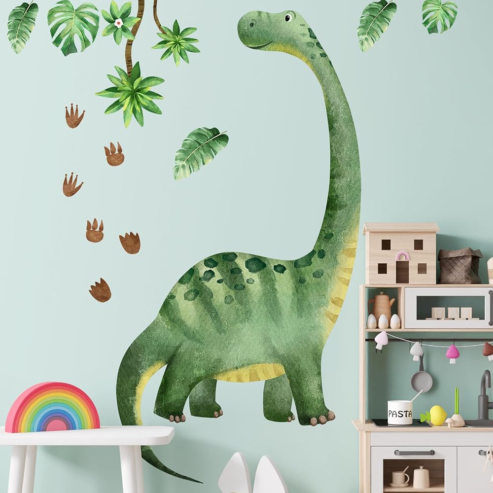 • شارات جدار الديناصورات الخضراء الكبيرة: شارات جدار الديناصورات المائية الجميلة قشرة وعصا ، ديناصور خضراء خضراء لطيف للغاية ، مع أوراق النخيل الخضراء ، أقدام الديناصورات وأشعة الشمس ، ملصق جدار ديناصور طبيعي قديم ، مثالي لتزيين غرف الأولاد ، وخاصة سوف يحبها عشاق الديناصورات كهدية.