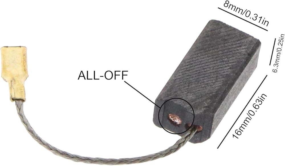 [Dimension]: Size of this carbon brushes is about 16x8x6.3mm/0.63x0.31x0.25inch.