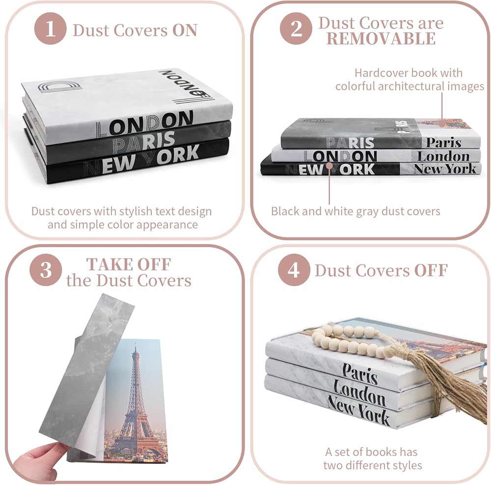 2. مجموعات الكتب الزخرفية المثالية للديكور المنزلي المتميز - كل كتاب مزيف له تصميم مختلف مع غطاء جميل ، لتجلب لك إحساسًا بالأزياء ، يقدم كل كتاب زخرفي تصميم غلاف فريد يعرض صورًا جميلة. يمكن أن تكون الأكمام الغبار الخارجية قابلة للإزالة حتى تتمكن من استخدامها كمجموعة ثانية من الكتب الزخرفية. جميل من الخارج ومساحة كبيرة للكتابة في الداخل ؛ ويمكن استخدامها لتزيين الغرفة ، وسوف تجعل غرفتك أكثر جمالا. لهجة رائعة لأي مكان في منزلك!