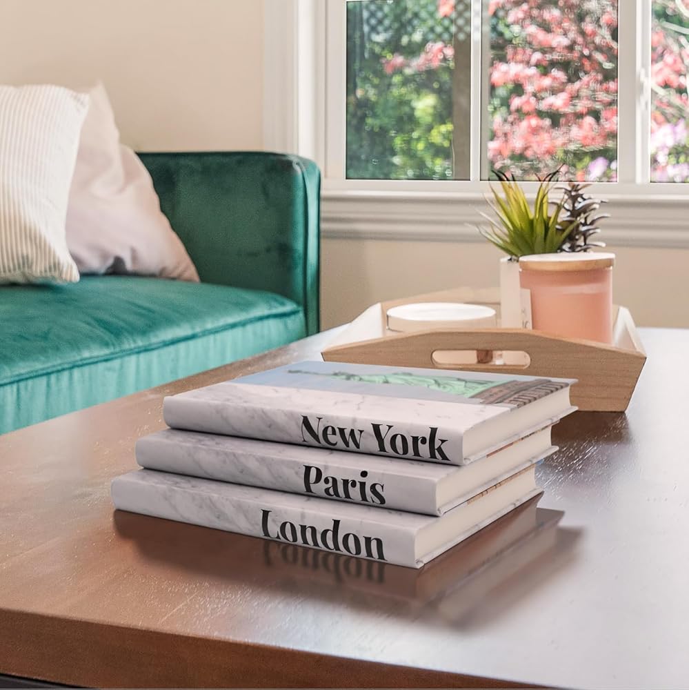 4.Libros Decorativos Para Mesa de Centro - كتب زخرفية مصنوعة من مواد ورقية عالية الجودة وكرتون قوي. يمكنك استخدام لفترة طويلة. 3 قطع الكتب الزخرفية مجموعة تصميم مع غطاء جميل ، طباعة عالية الجودة.
