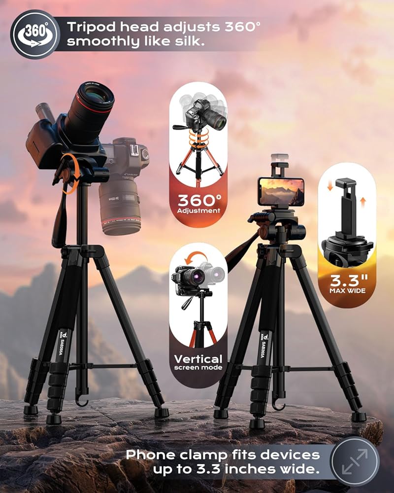【Tripod متعدد الاستخدامات】 - هذا الحامل ثلاثي القوائم قابل للتكيف بدرجة كبيرة ، يدعم مجموعة واسعة من الأجهزة بما في ذلك الكاميرات والكاميرات غير المرآة (CSC) ، وأضواء الحلقة ، وجوهرات ، والهواتف الذكية. إنه مثالي لالتقاط الصور ومقاطع الفيديو في الأحداث ، والحفلات ، والسفر ، والمشي لمسافات طويلة ، والرياضة ، وكذلك لتصوير مقاطع الفيديو على YouTube ، مدونة مدونة ، تدفقات مباشرة ، والاجتماعات عبر الإنترنت.