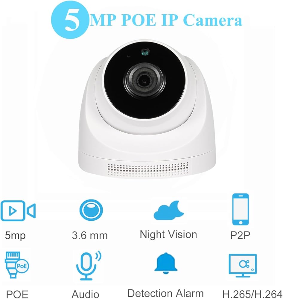 • 〖دقة 5MP HD〗 تستخدم كاميرا IP هذه مستشعر CMOS عالي الدقة 5/3 بوصة في 25 إطارًا في الثانية ، والذي ينتج صورًا/مقاطع فيديو واضحة وسلسة ، مما يسمح لك برؤية المزيد من التفاصيل.
