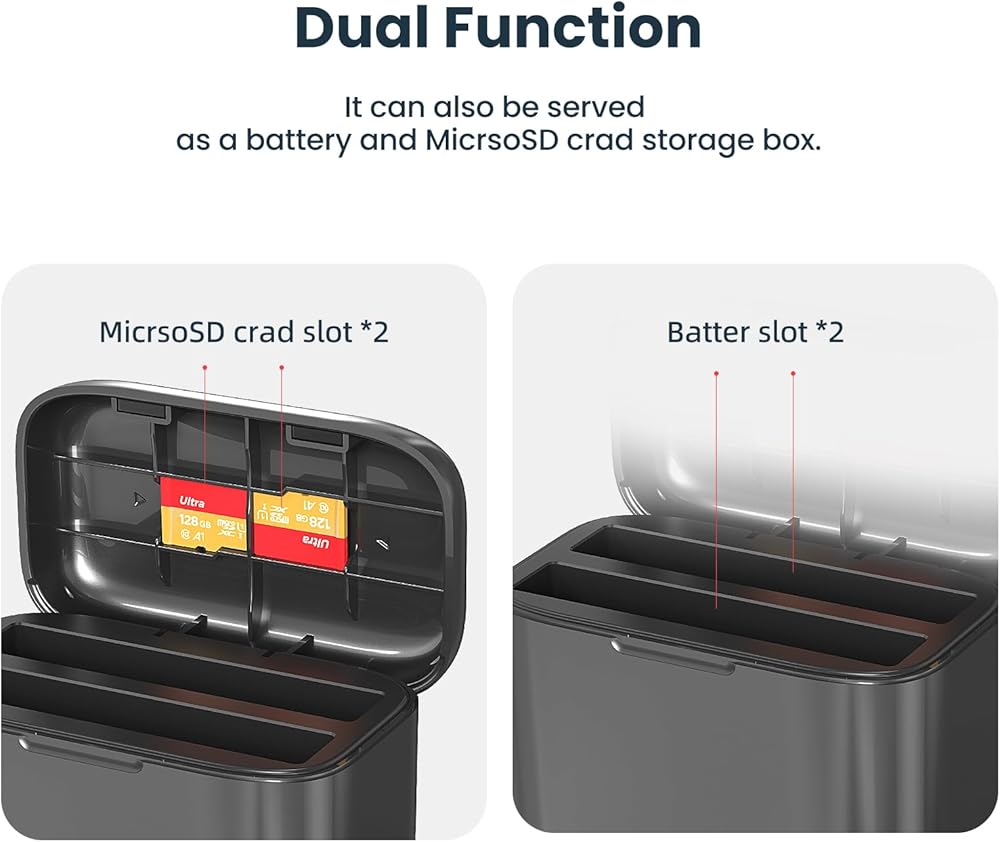 شاحن البطارية السريع لـ Insta360 x4 ، شحنة بطارية قناة 2 سريعة محمولة مع فتحات بطاقة MISRO SD ، تدعم بروتوكول الشحن السريع PD2.0/PD3.0 (البطاريات لم يتم تضمينها)