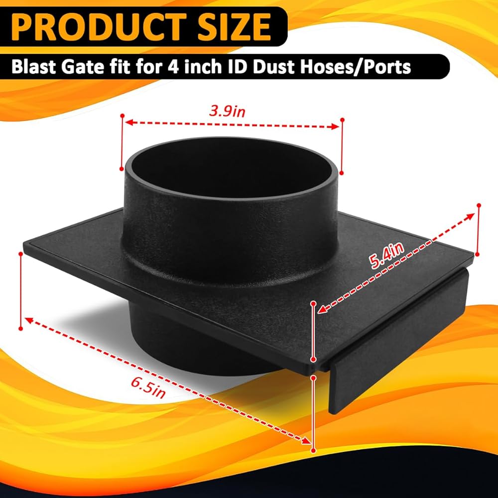 The manual blast gate help you improve the efficiency of your dust removal system. Various flexible hoses, pipes, and 4-inch ports from popular brands seamlessly fit together. Designed for use with 4-inch inner diameter dust hoses or other 4-inch inner diameter ports.