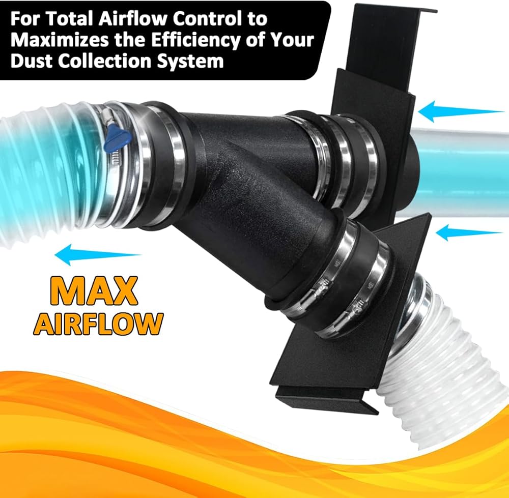 Efficiency Dust Collection: An movable gate controls and regulates the airflow between two machines, maximizing the efficiency of your dust collection system.