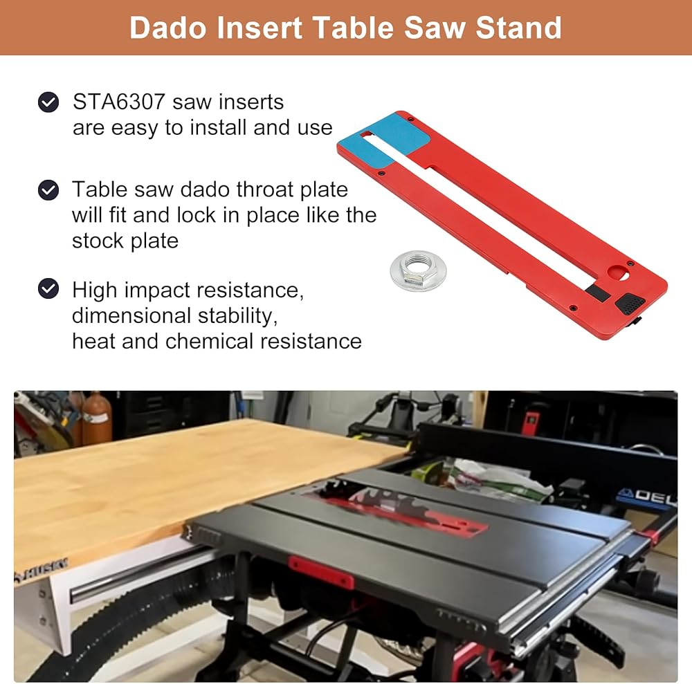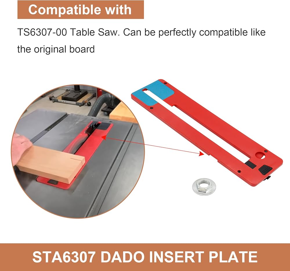 • 【Part number】: STA6307 Dado Insert Plate. The table saw dado throat plate will fit and lock in place like the stock plate. Also comes with Combination Washer and Nut