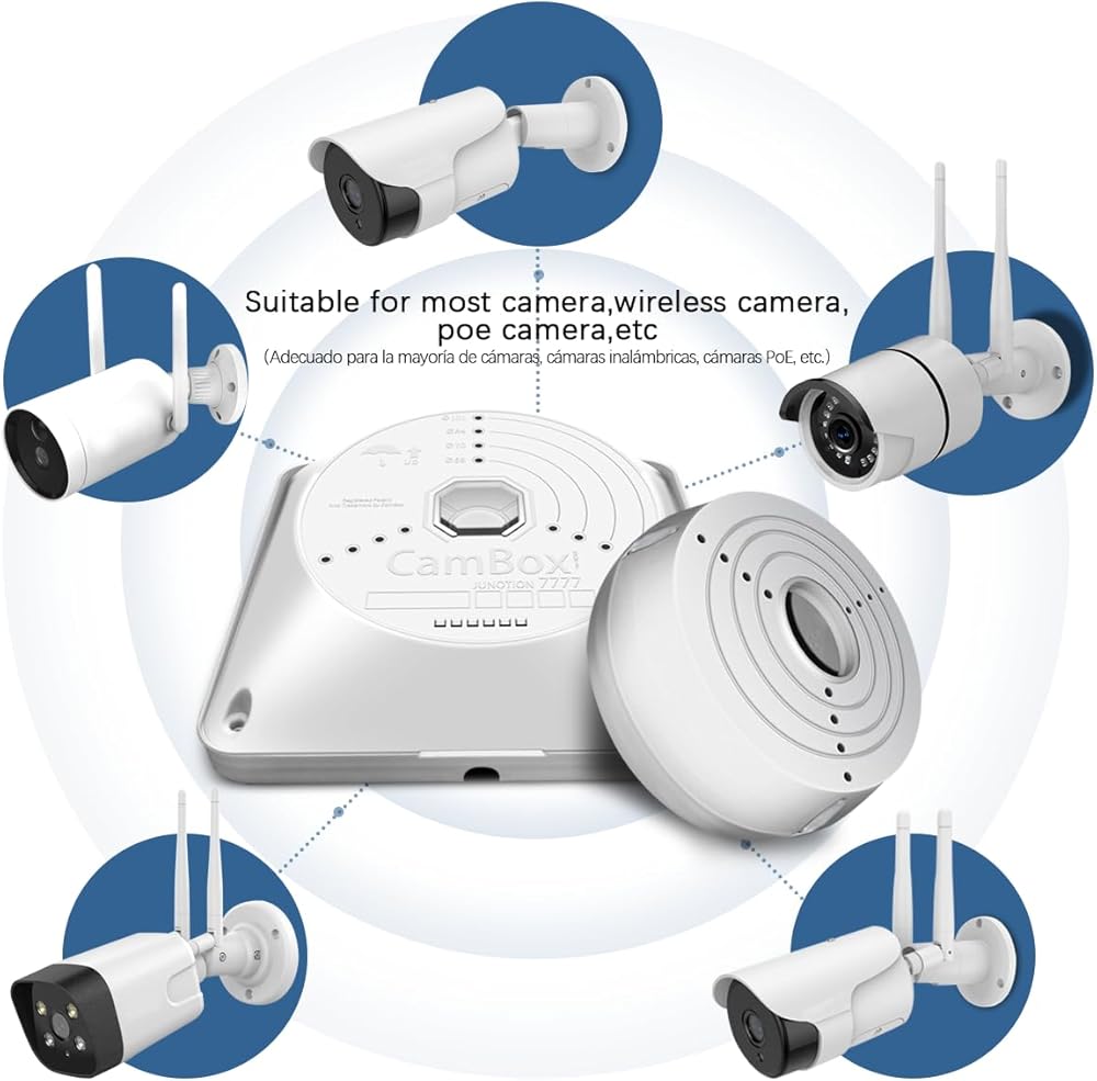 {Wide Compatibility} Our Security Camera Junction Box is highly versatile and compatible with various camera models, such as the solar panel. This ensures that you can use our universal ip camera mount with multiple camera brackets, including Bullet cameras and solar panel brackets.