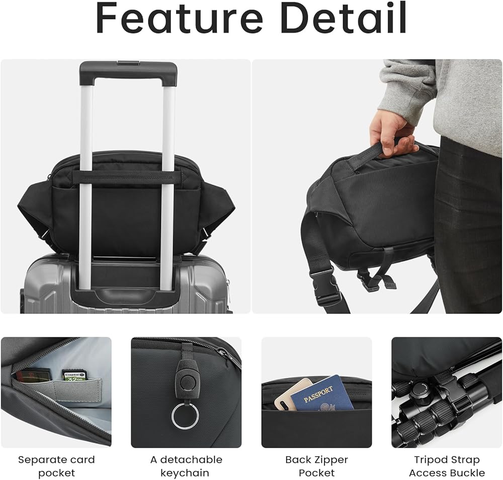 متعددة الأغراض: مع الأشرطة الكتف القابلة للتعديل وأشرطة اليد ، يمكن استخدامها كحقيبة كروس أو حقيبة كتف أو حزمة فاني أو حقيبة يد ، مما يوفر راحة في تحرير يديك من أجل سفرك ، وإطلاق النار في الهواء الطلق ، والتخييم ، وعطلة نهاية الأسبوع.