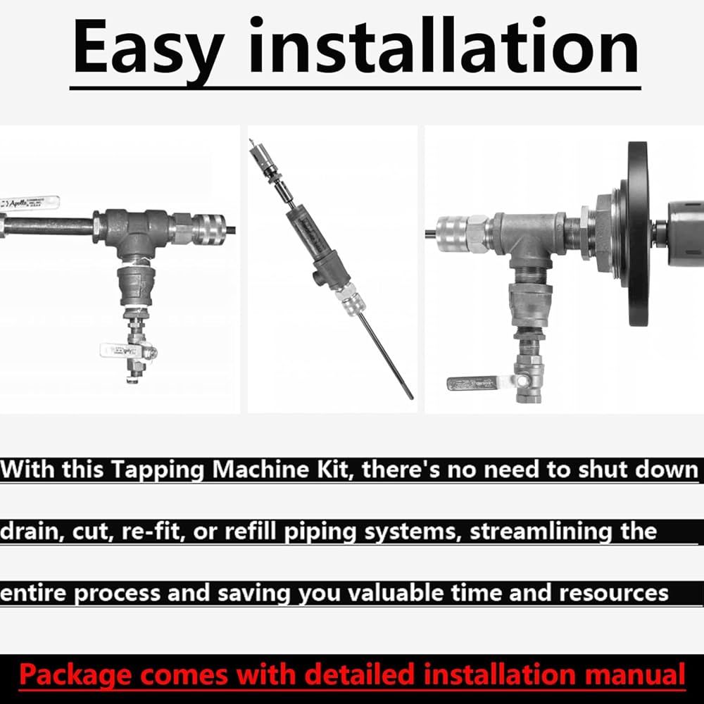 • Easy to Use: Package comes with detailed installation manual. With this Tapping Machine Kit, there's no need to shut down, drain, cut, re-fit, or refill piping systems, saving you time and effort during installation.