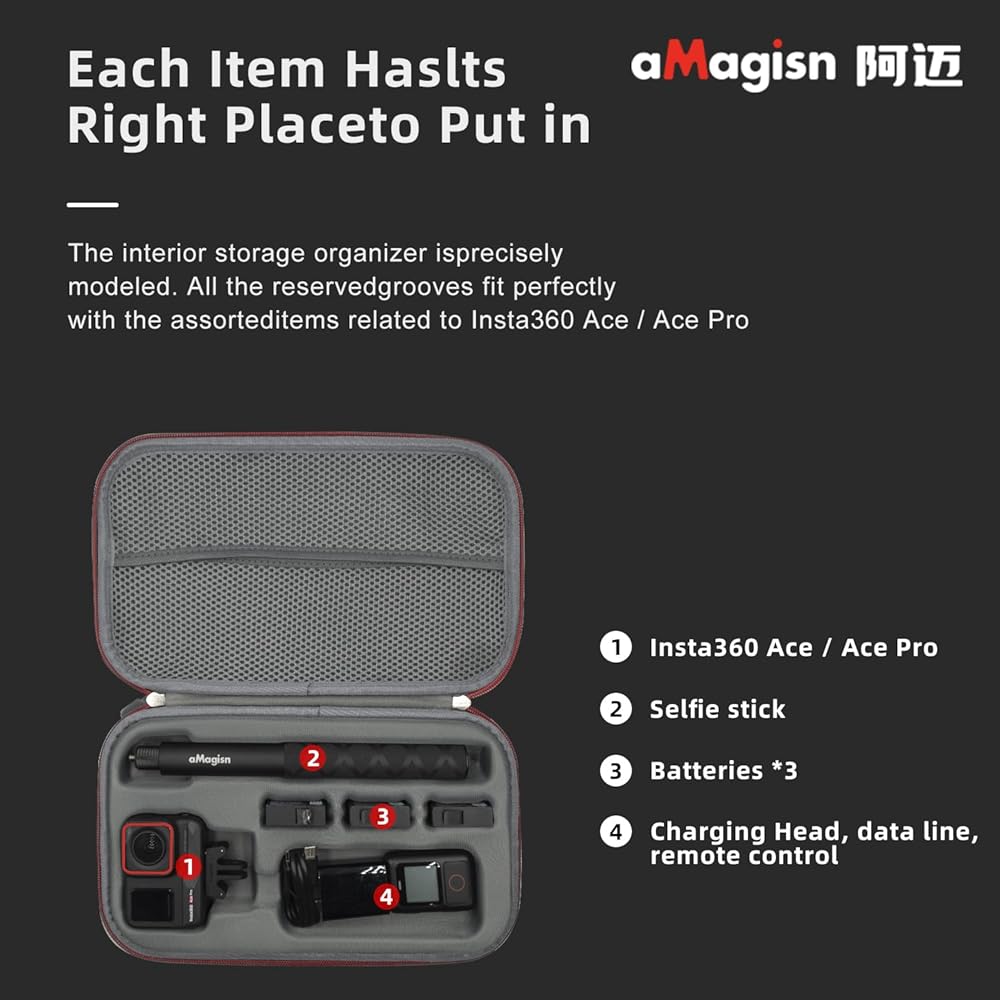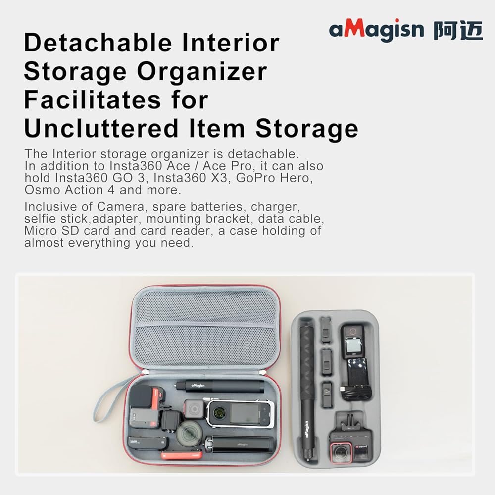 3.Unique custom designed storage cases for the Ace Pro and other action camera accessories are sponged to protect your camera, keeping your camera and accessories safe, protected and organized.