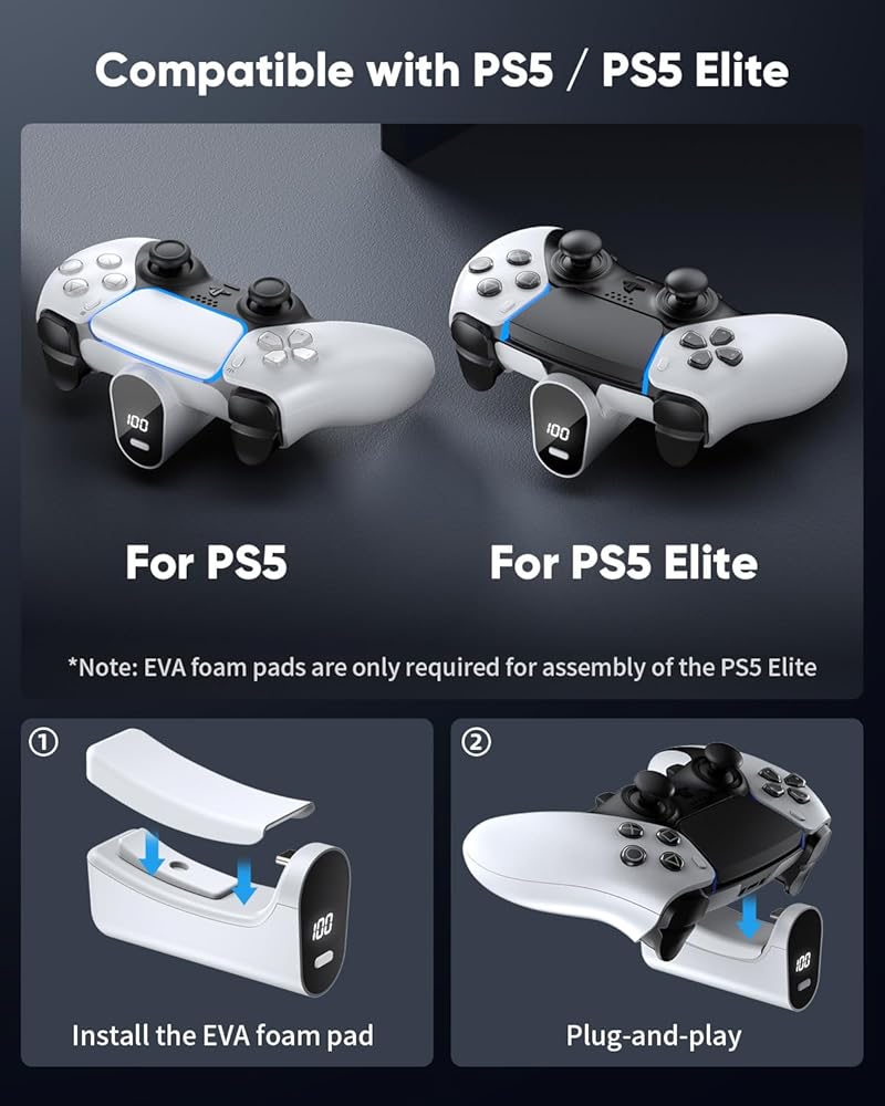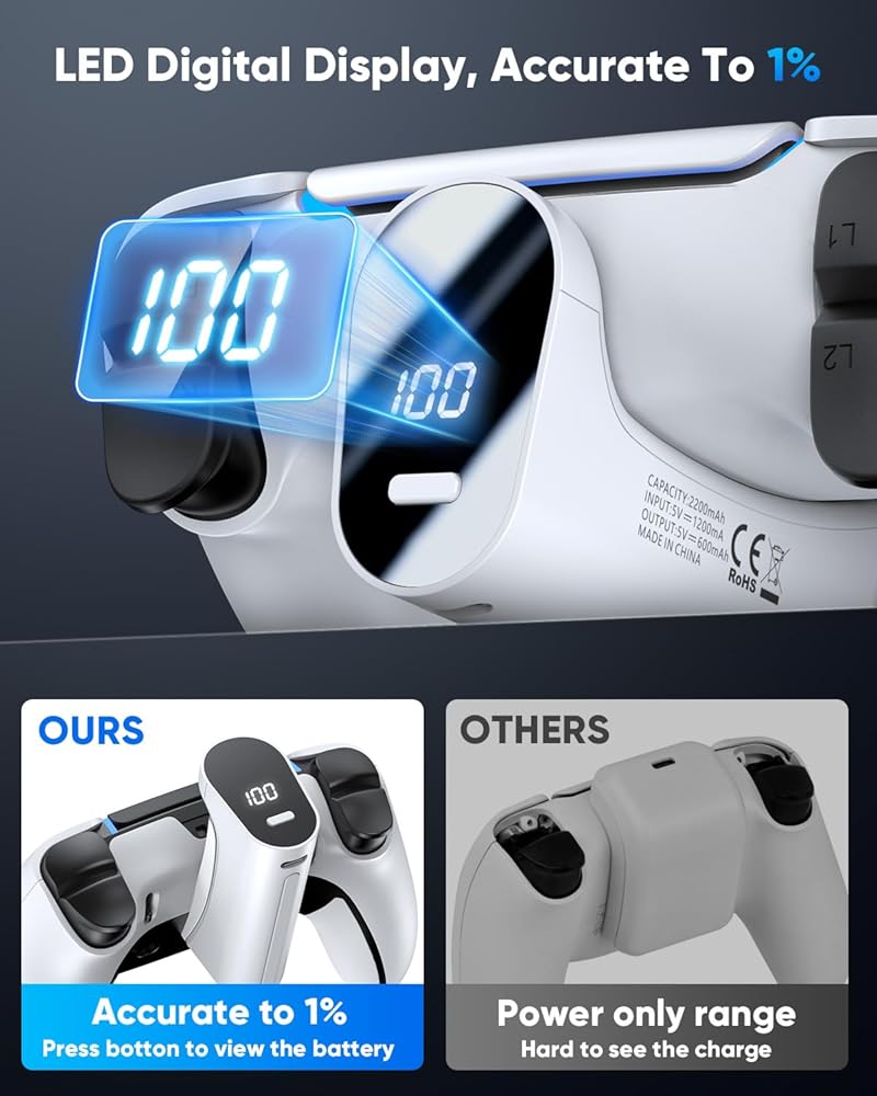 【ترقية الشاشة الرقمية LED】 أحدث مؤشر LED Yuanhot للبطارية PS5/PS5 EDGE القابلة لإعادة الشحن لها شاشة رقمية واضحة لإظهار الطاقة المتبقية. دقيقة إلى 1 ٪ ، يمكنك دائمًا معرفة حالة عمر البطارية بنقرة فقط.