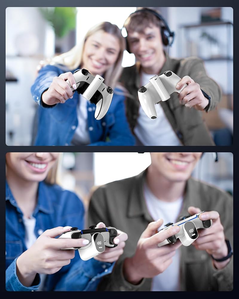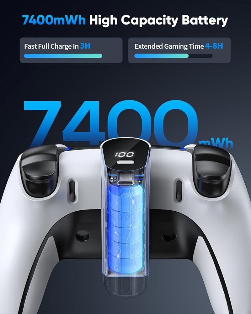 time وقت ألعاب أطول】 لوحدة تحكم PS5/PS5 Edge مؤشر LED ذكي قابلة لإعادة الشحن لها سعة ضخمة قدرها 7400 ميجا واط ، والتي توفر 4-8 ساعات من وقت الاستخدام في 3 ساعات. exter وقت الألعاب الخاص بك لفترة طويلة ، إنه الخيار الأمثل للاعبين المتعطشين!