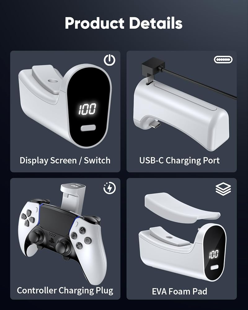 【ما تحصل عليه 1】 7400 ميجاوات بطارية مدمجة قابلة لإعادة الشحن مرة أخرى لوحدة التحكم PS5/PS5 حافة ، 1x من النوع USB-C ، كبل شحن مستخدم 1x ودعم فني.
