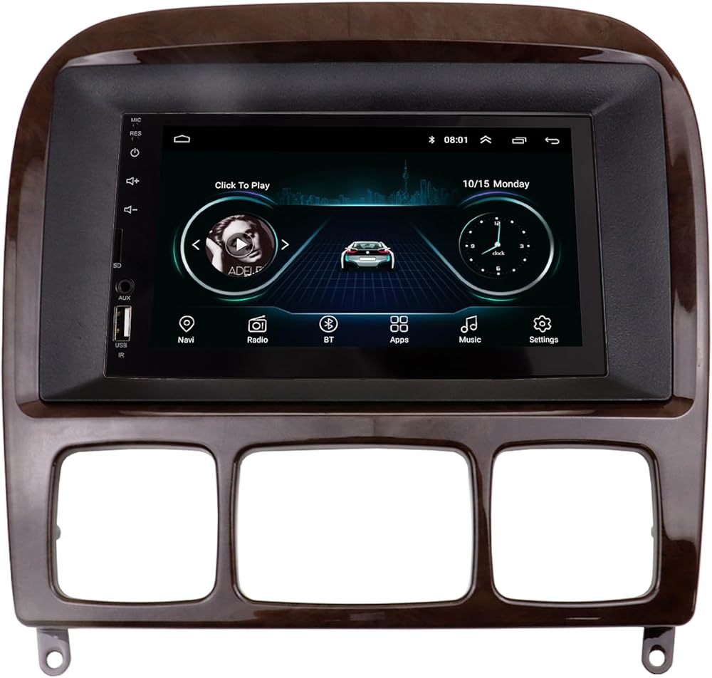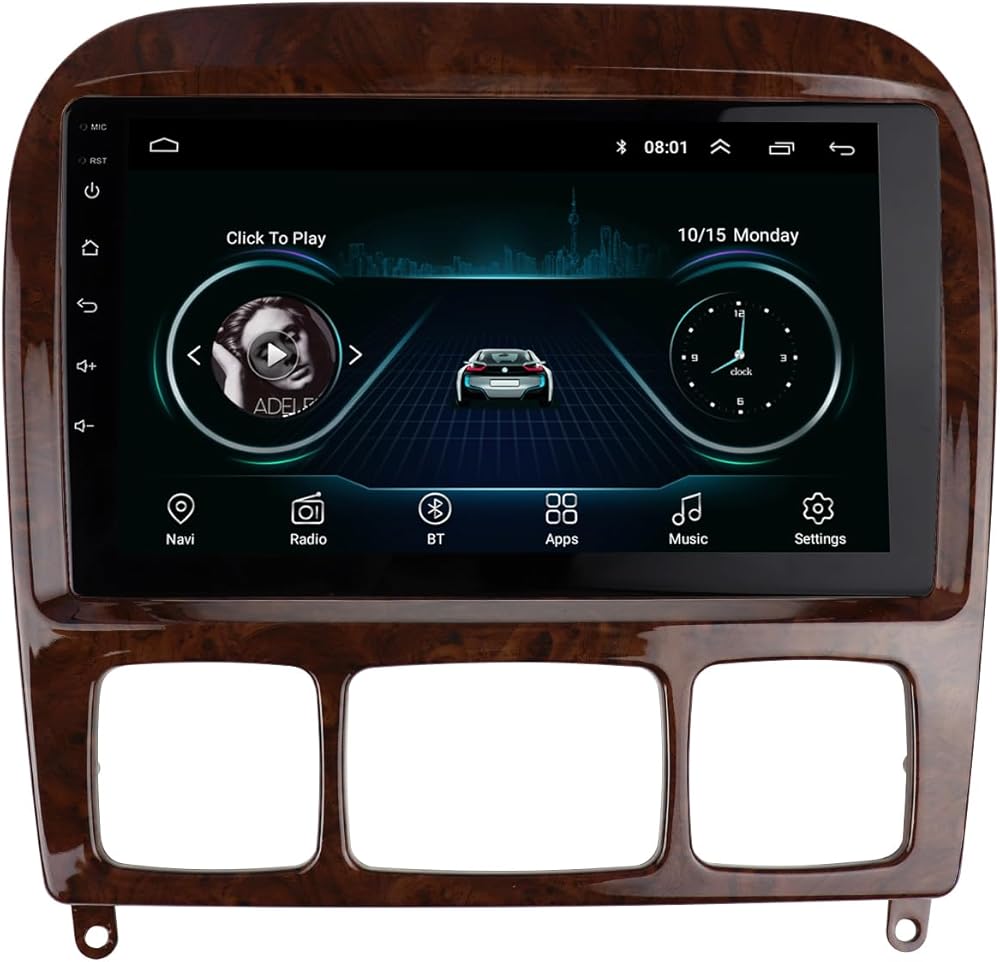 DUBLE DIN و 9 بوصات راديو مجموعة DASH متوافقة مع مرسيدس بنز فئة W220 1998-2005 تركيب استريو التثبيت مدي (لون خشبي)