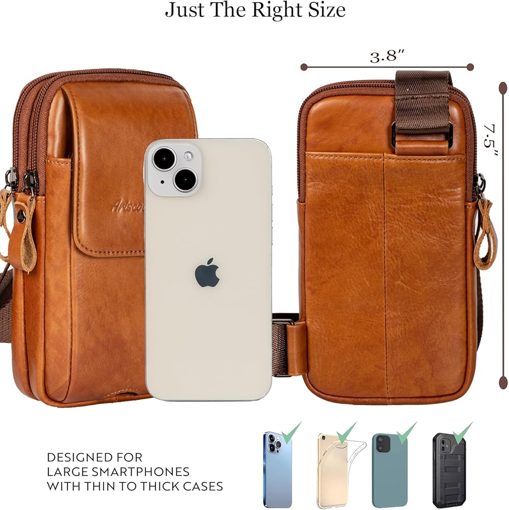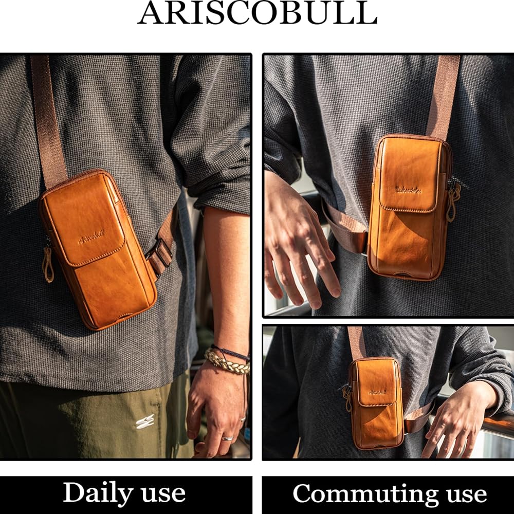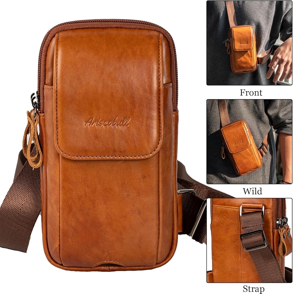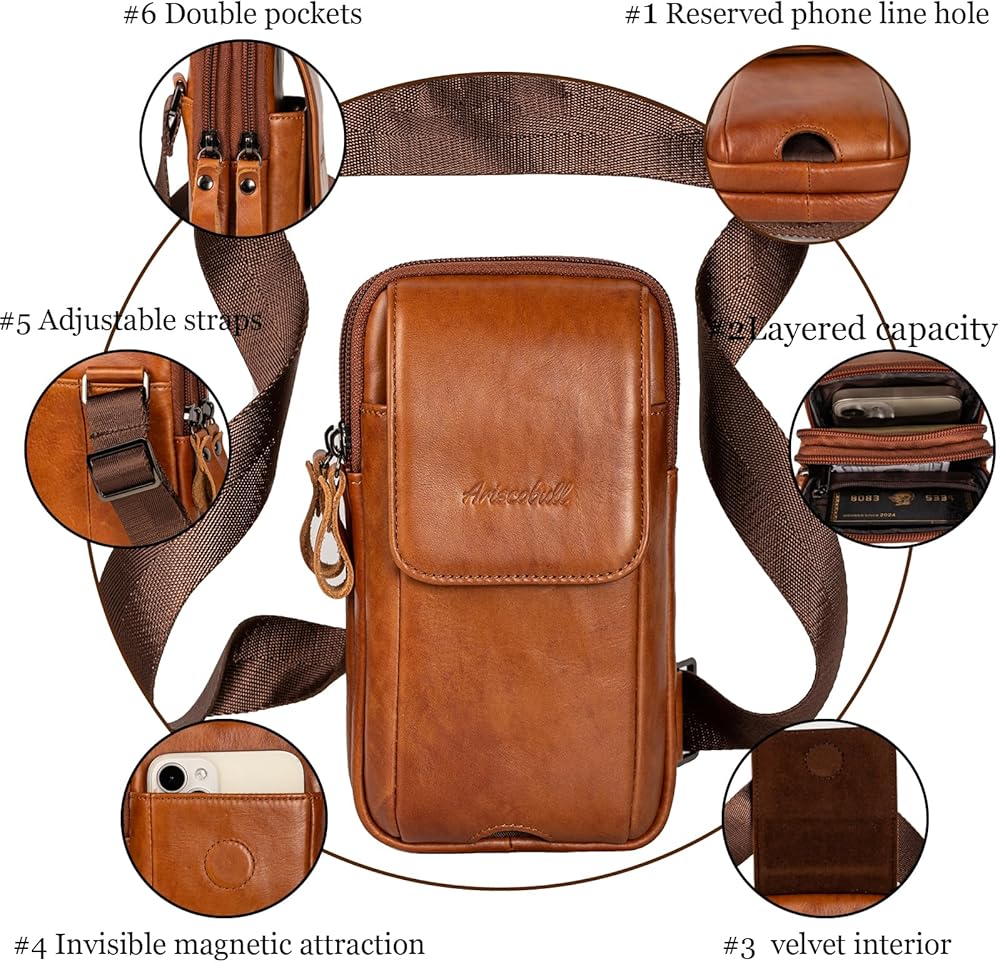 رجعية جلدية الرأسية الحافظة الهاتف الخليوي | 7.5 × 3.8 × 2 "، فإن أكياس الصدر في Ariscobull من Ariscobull ، تمزج بين الأمن والأزياء العالية ، مع الحفاظ على بطاقات الائتمان للرجال ، والهاتف الذكي المنظم بدقة. حزام كتف نايلون قابل للتعديل مدرج لارتداء Crossbody ويناسب أي نوع من نوع الجسم.
