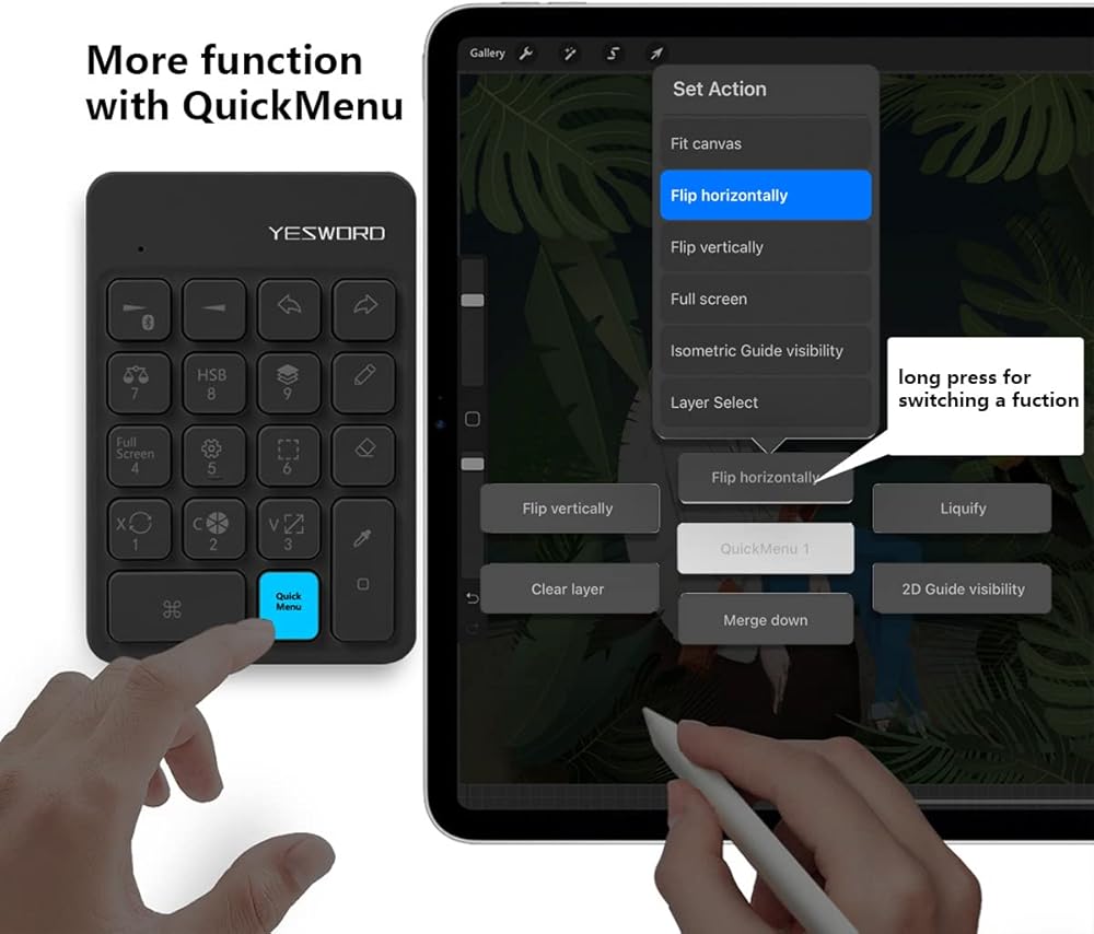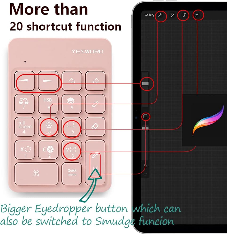 ⌨【الاستخدام】YesWord X-18 هو نوع واحد من لوحة المفاتيح المصممة لـ Procreate مع 18 مفتاحًا وتوفر أكثر من 20 وظيفة اختصار