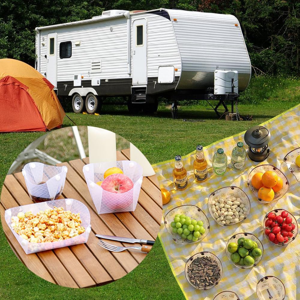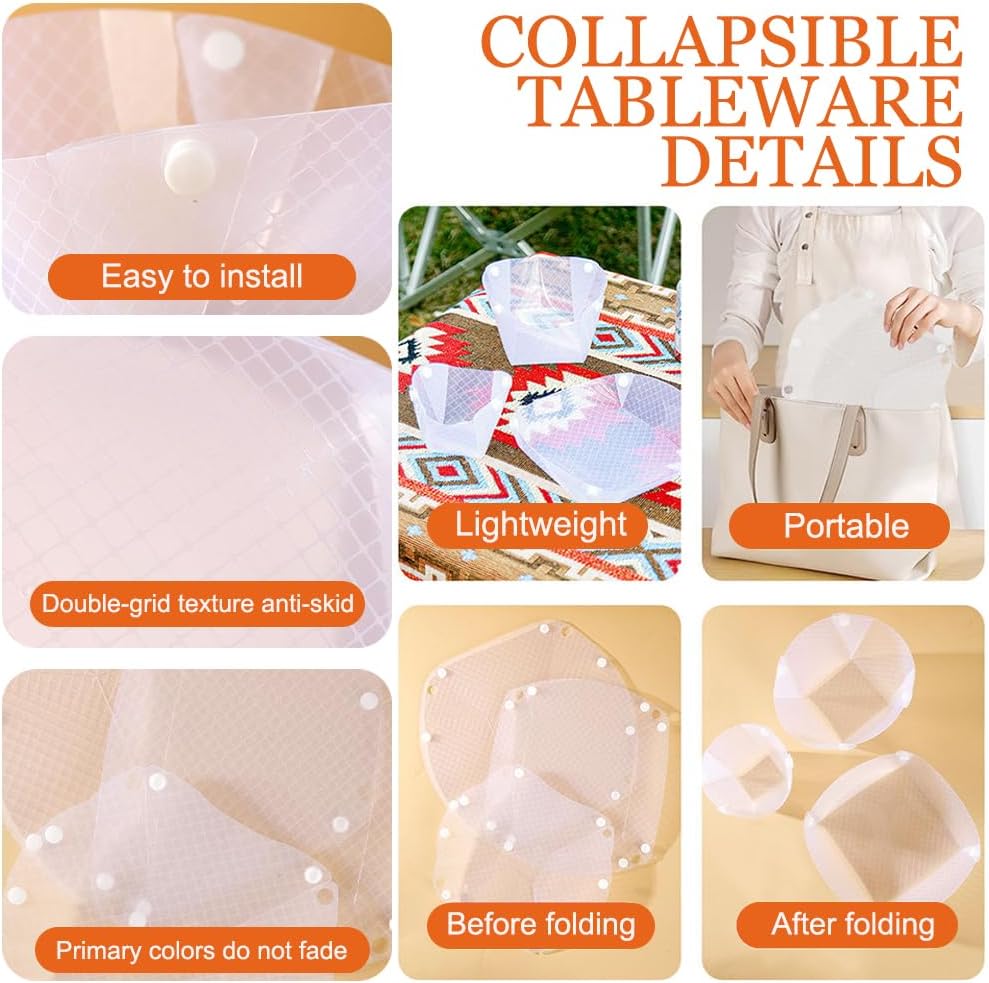 • 【من السهل التنظيف】 أدوات المائدة المحمولة تحتوي على سطح أملس ، فقط شطفه بالماء وتجفيفه بعد الاستخدام ، مما يجعله مناسبًا للغاية للتنظيف. يتيح التصميم الشفاف رؤية البقع ومسحها بسهولة.
