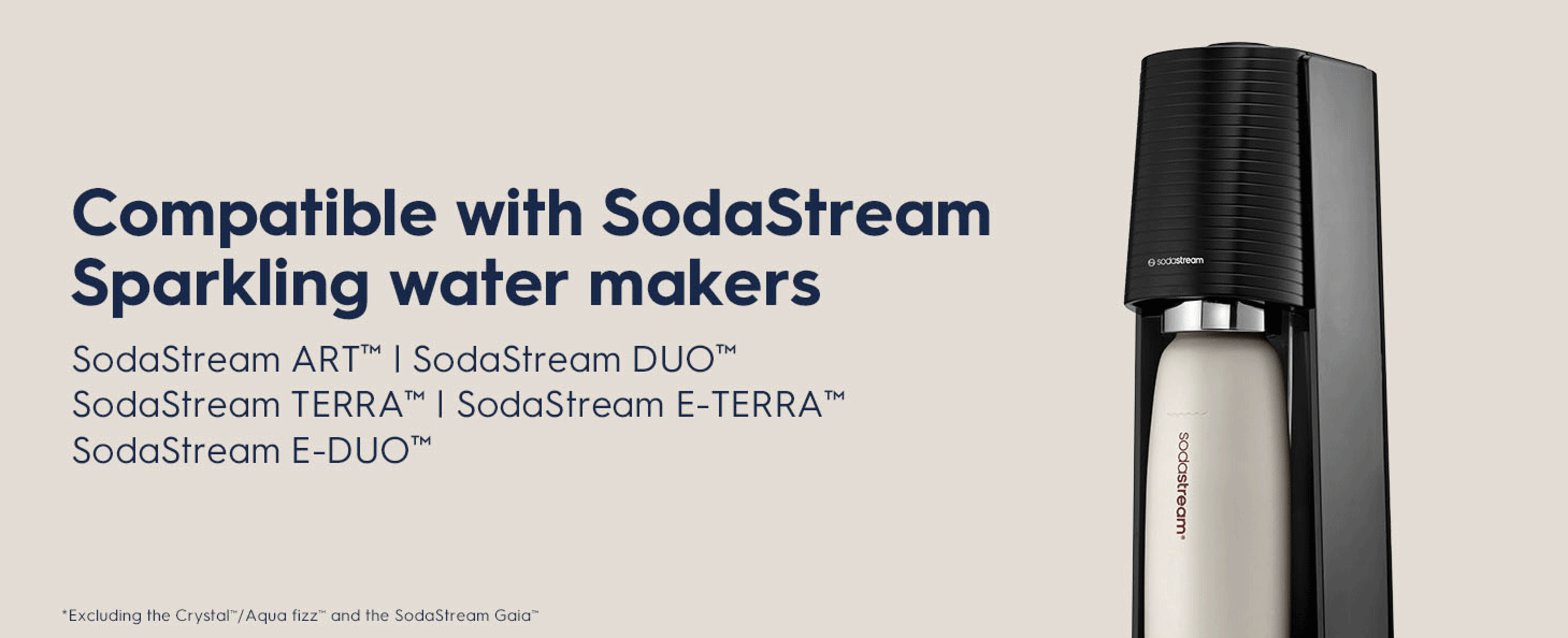 This reusable carbonating bottle not only provides convenience but also helps reduce environmental impact by saving thousands of single-use plastic bottles. Available in three stylish colors—Mint, Storm, and Sand—it complements any lifestyle. Please note, this bottle is compatible with Terra, E-Terra, Art, Duo, E-Duo and Enso machines only