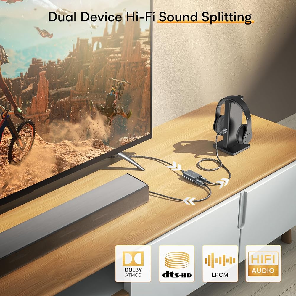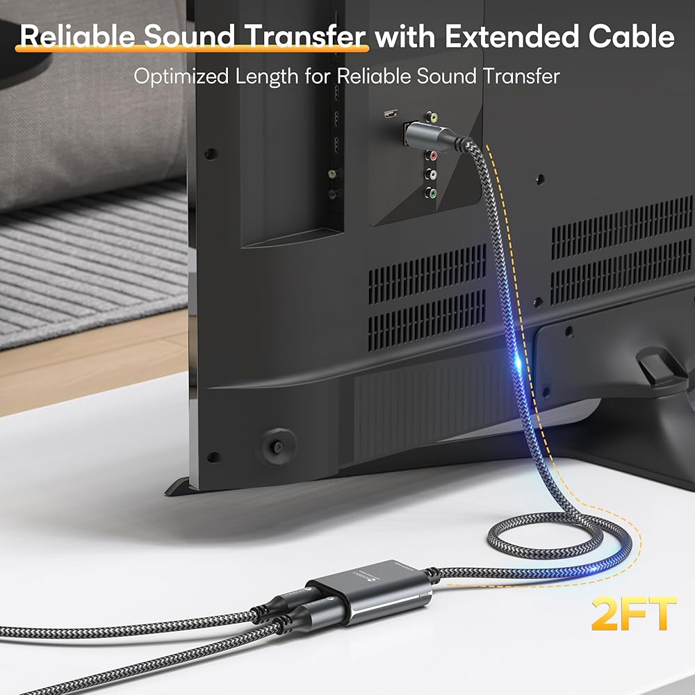 • [1 في 2 Out Out Flitter] الإعداد لمصدر الصوت البصري (مثل التلفزيون) و 2 أجهزتين (مثل السماعة ، سماعات الرأس). ستنقل أجهزة الاستلام صوتًا متطابقًا في وقت واحد. لا حاجة إلى إمدادات طاقة إضافية ، ومع ذلك يبقى الأداء مستقرًا باستمرار وراء الآخرين. موصل أكثر تأثرًا مصممًا حصريًا لاستقرار اتصال أكثر موثوقية. يفرغ من مشكلتك في تغيير الانقسامات الضوئية الصوتية باستمرار. *يرجى التأكد من إدخال الموصل بالكامل للحصول على أفضل تجربة.
