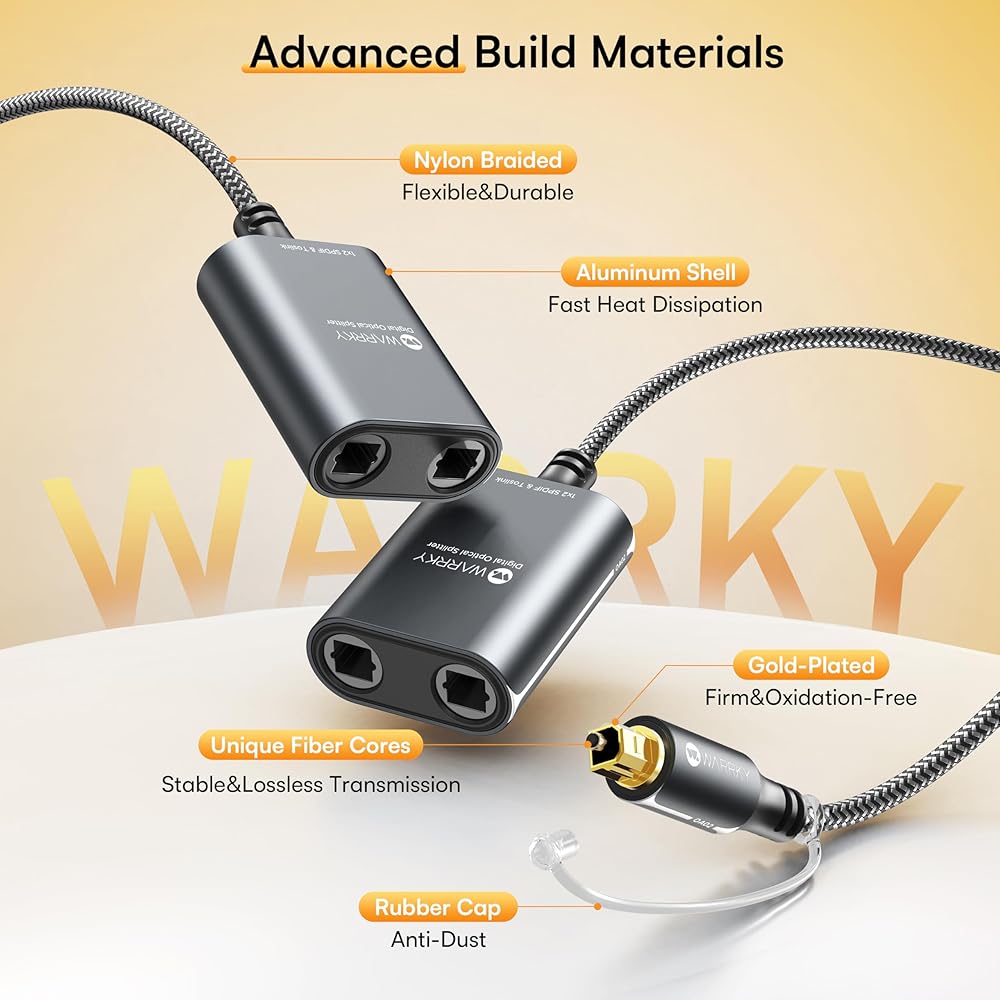 الخائن البصري الرقمي WARKY ، 1 في 2 OUT OUT SPLITTER 2FT [قذيفة الألومنيوم ، مطلي بالذهب] TOSLINK لـ LPCM 2.0 ، DOLBY ، DTS 5.1 ، متوافق مع شريط الصوت ، سماعات الرأس ، أجهزة السمع ، أجهزة التلفزيون