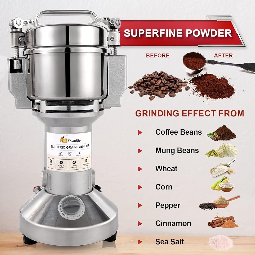 الطحن الناعم: مصنع الذرة يأتي بمحركات رائعة للغاية ومحامل عالية الجودة. شفرة من ثلاث طبقات مع شفرة سحق ، شفرة القرن ، وشفرة إزالة المسحوق. يستغرق الأمر 30 ثانية فقط لطحن جميع أنواع المواد إلى 50-300 شبكة.