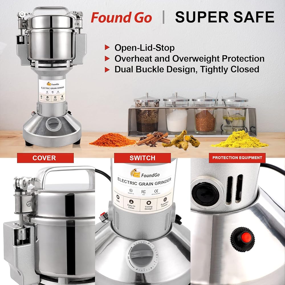 غطاء الغطاء المفتوح: لا تعمل مطحنتنا أبدًا مع الغطاء المفتوح ، لذلك يحتوي على مستوى عالٍ من الأمان. لذلك ، سواء كان هناك أطفال أو كبار السن في المنزل ، لا يوجد خطر السلامة.