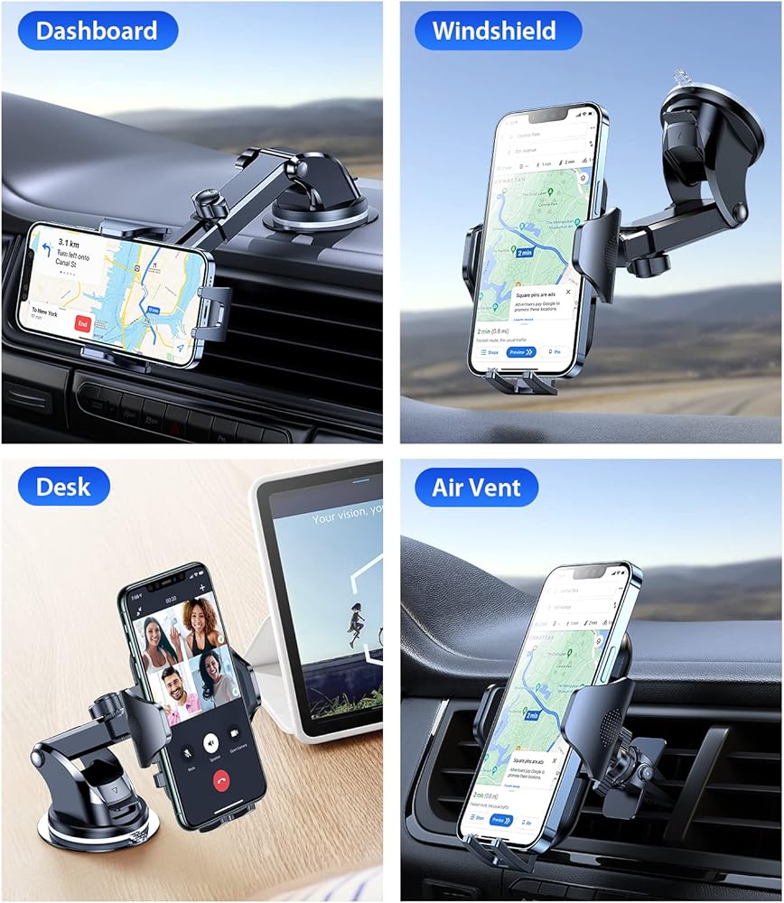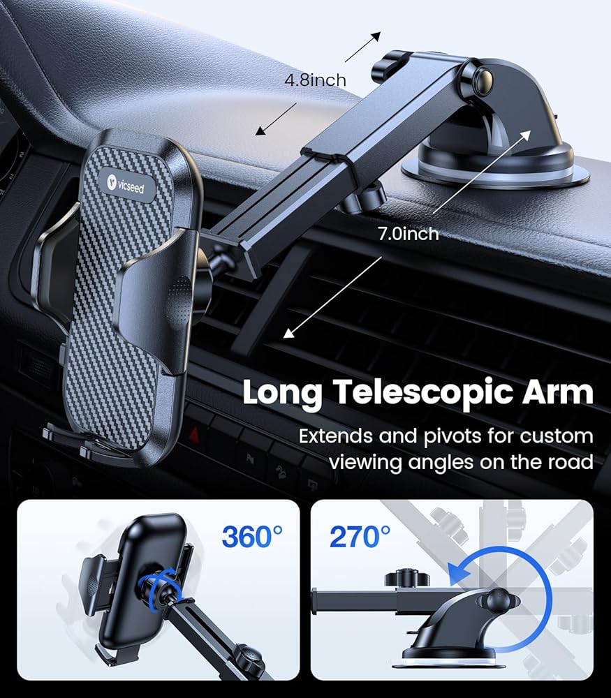 🔄【 3-in-1 التثبيت المرن × 360 درجة الدوران الكامل】 التوافق العالمي مع لوحة القيادة ، الزجاج الأمامي ، وفتحات الهواء 99 ٪ (يناسب شفرات تنفيس أفقية/عمودية) ، مما يجعلها مناسبة ل 99 ٪ من المركبات (بما في ذلك سيارات السيدان ، سيارات الدفع الرباعي ، شاحنات بيك آب ، وسيارات الأجرة). يسمح مفصل الكرة 360 درجة وذراع قابلة للتمديد بتبديل فوري للتصوير إلى الأرض ، مما يضمن زاوية المشاهدة المثالية للملاحة والمكالمات والترفيه.