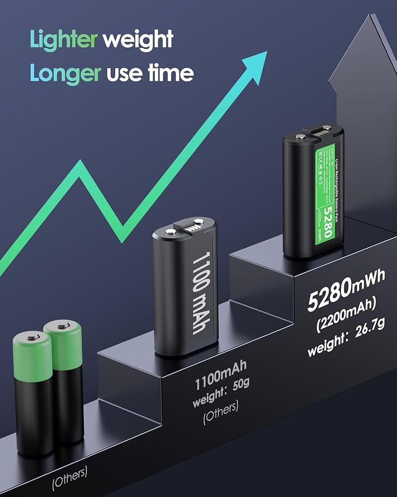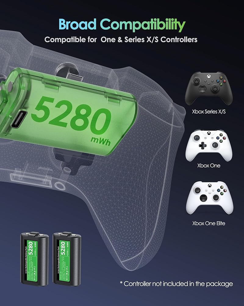 • [Broad Compatibility]Our battery pack rechargeable compatible with the new and previous xbox controllers, including Xbox Series X|S, Xbox One/S/X and Xbox One Elite controller.