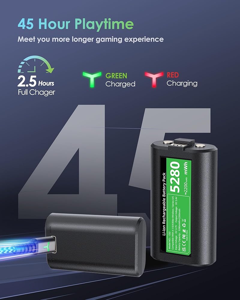 • [Extended Playtime] Say goodbye to constantly changing AA batteries with our long-lasting and powerful 5280mWh rechargeable Controller batteries, providing up to 45 hours of game time,supported playing while charging, let you experience uninterrupted gaming.