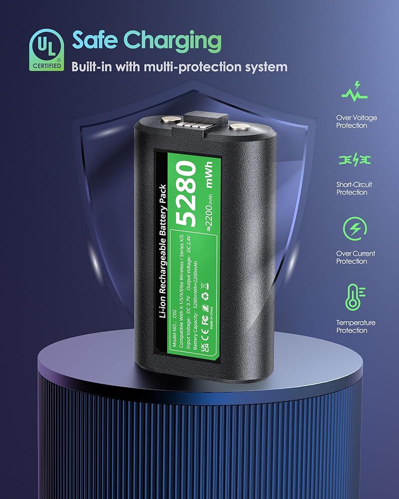 • [Safety Protection]Our battery charger for Xbox has various layers of safety protection to prevent overheating, overcurrent, overvoltage, overcharging and etc. LED indicators turn red while charging and green when fully charged for easy monitoring.