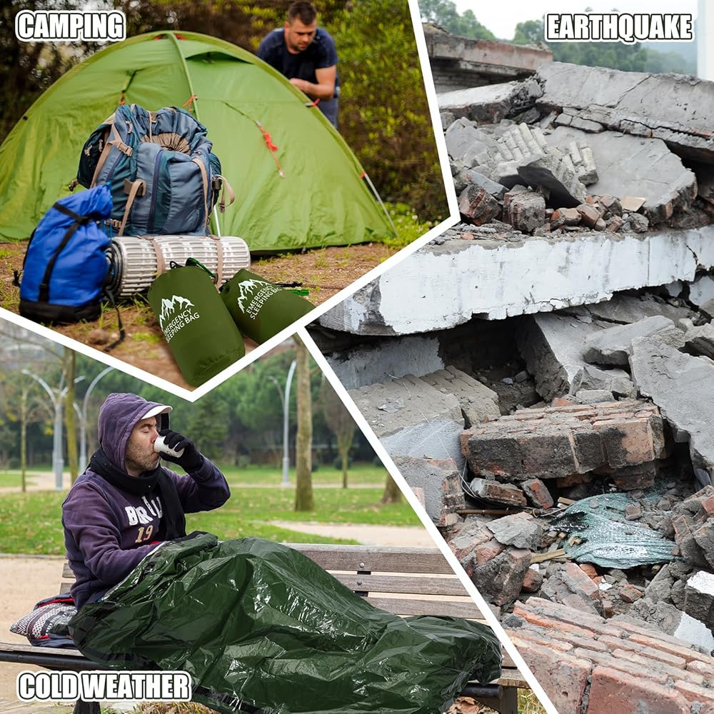 Quality and Versatile: these survival sleeping bags are made of durable and waterproof materials, capable of withstanding harsh outdoor conditions; They offer maximum protection and warmth in emergency situations, making them an essential part of survival gear, whether it's for camping, hiking, or emergency preparedness