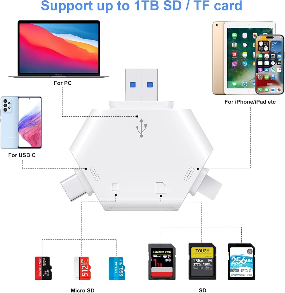 [أداة للمصور] إنها ملحقات التصوير الفوتوغرافي لكاميرا Canon Nikon SLR. يحتوي قارئ بطاقة Tiansong Triangle SD على واجهات مختلفة ، USB/USB-C (النوع C)/Lightning ، فتحات بطاقة SD/MicroSD ، قارئ بطاقة iPhone SD متوافق مع iPhone/iPad ، قارئ بطاقة SD USB C متوافق مع iPhone15 Pro MacBook Pro ، MacBook Air و iPad Pro M1 و M2 ومعظم الأجهزة ، والتي تتيح لك نقل الملفات المطلوبة بسهولة بين الأجهزة المختلفة.