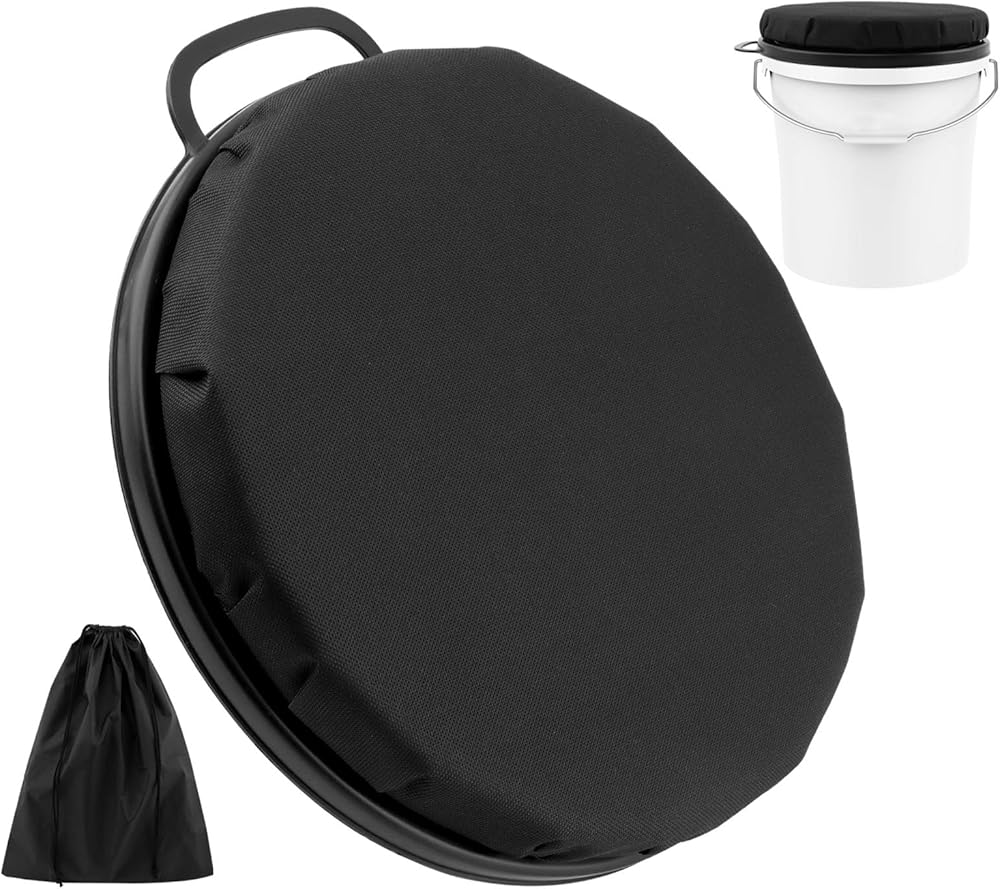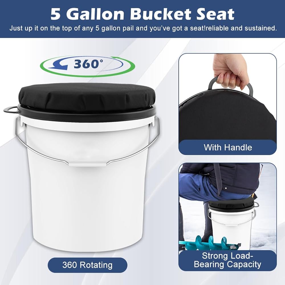 مقعد دلو 5 جالون ، مقعد دلو ، بزاوية 360 درجة ، مقعد دلو إسفنجي للجلوس المريح ، مقعد دلو الصيد الجليدي مع حقيبة تخزين للبستنة ، التخييم ، غسل السيارات (أسود)