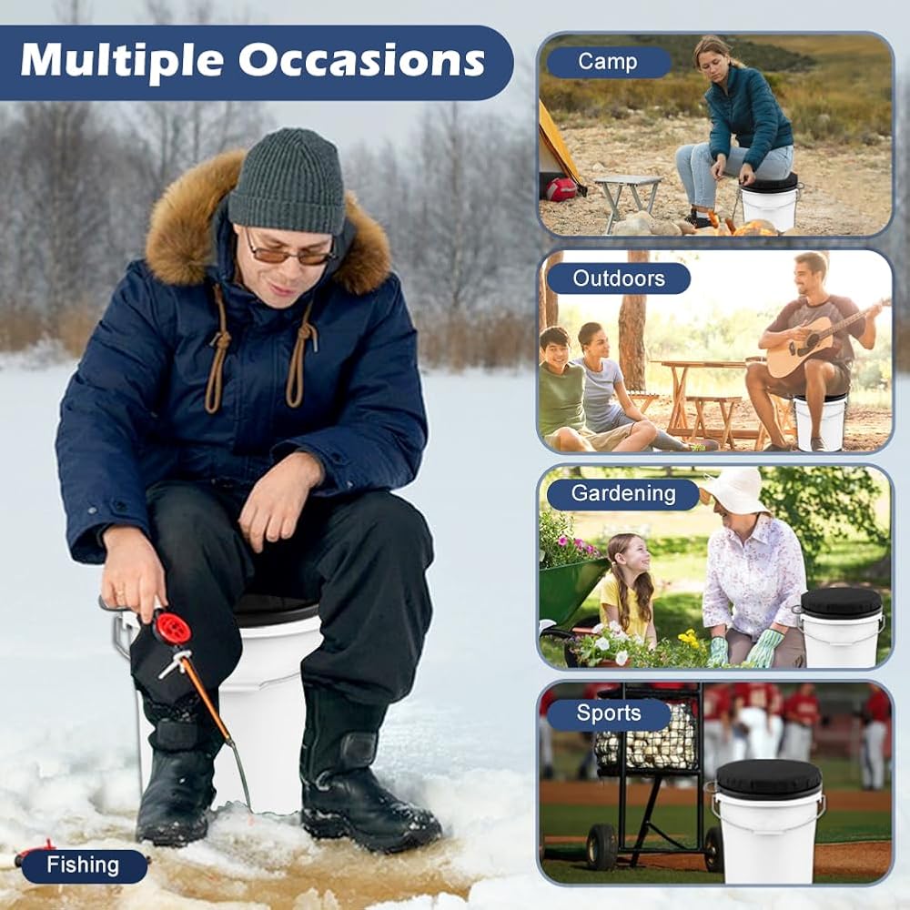 【WIDE APPLICATION】The bucket seat comes with a carrying handle for easy carrying, suitable for a variety of outdoor activities such as hunting, fishing, baseball training, gardening, car repair, farm, camping, etc., practical gift for outdoor enthusiasts.