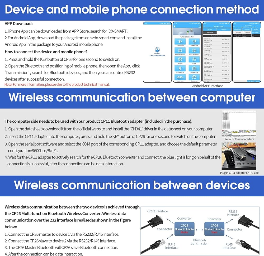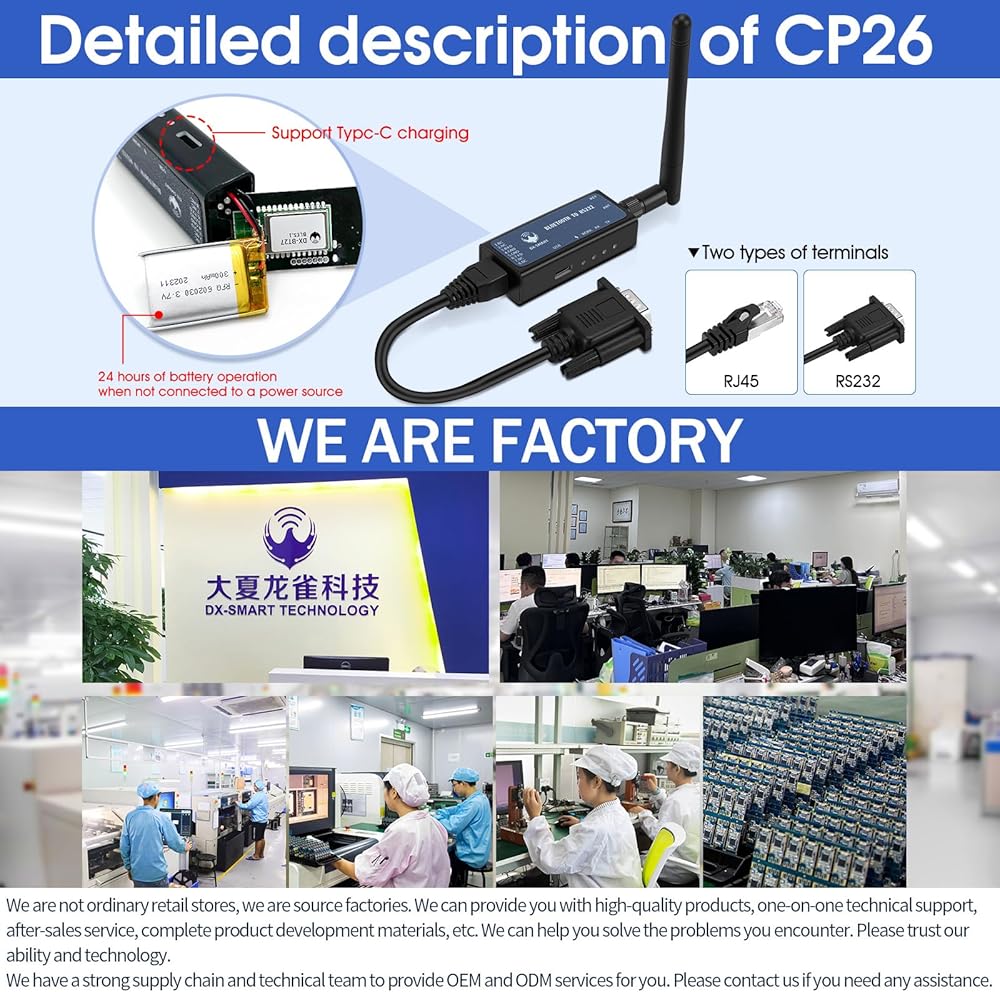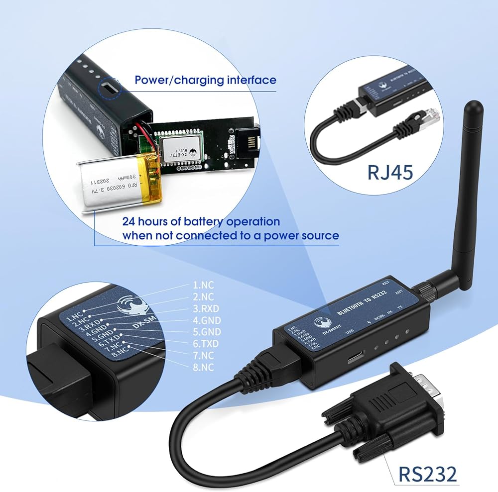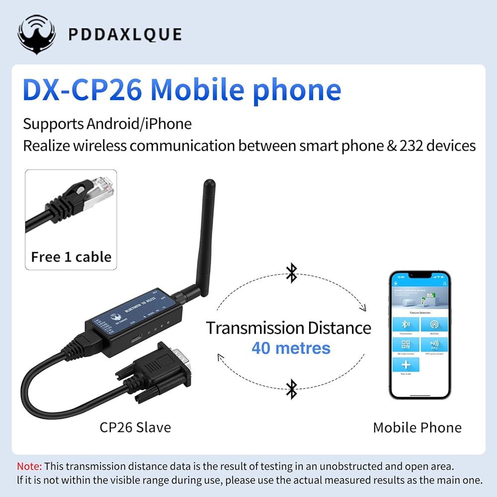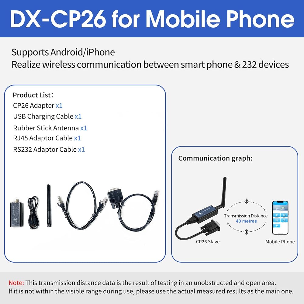 DX-CP26 RS232 Interface Device to Wireless Bluetooth Serial Adapter, Industrial Serial Wireless Bluetooth Converter, Convert RS232 Wired Device to Wireless